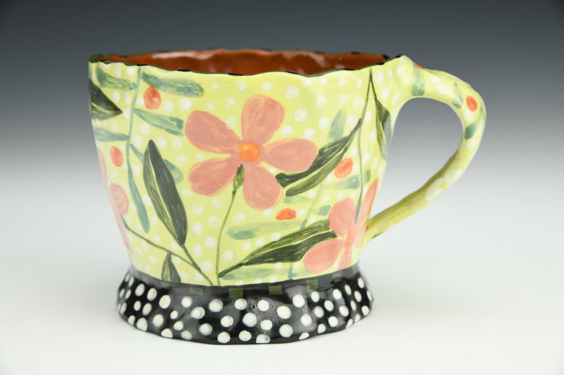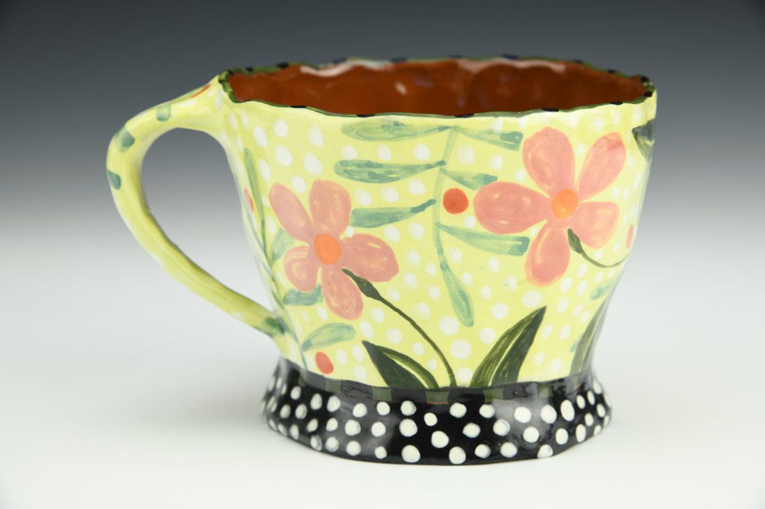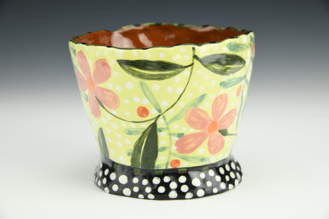 Red earthenware, hand built, underglaze, glaze, cone 04 fired, 3.5 x 5.75 x 4.5 inches.