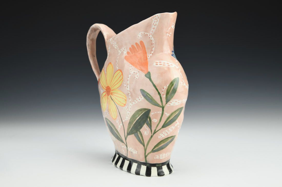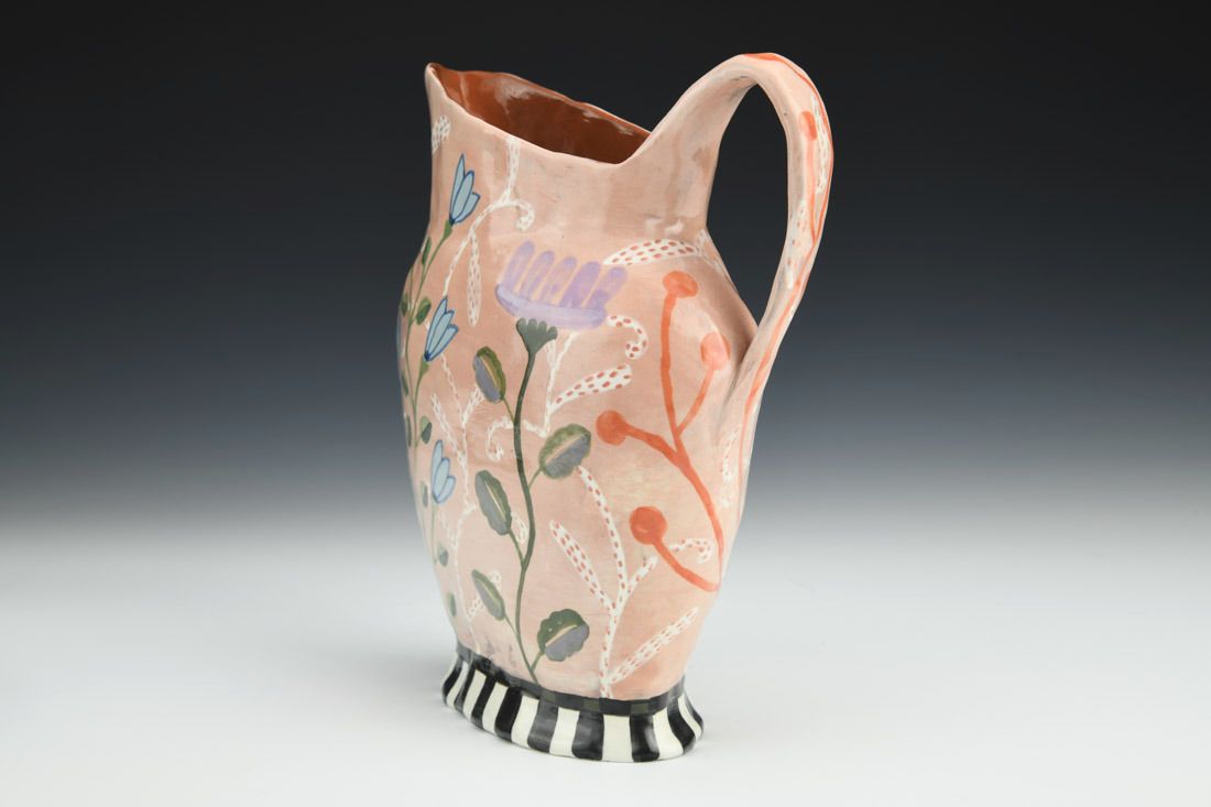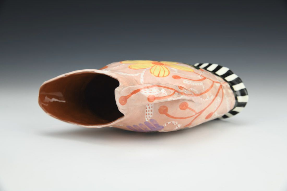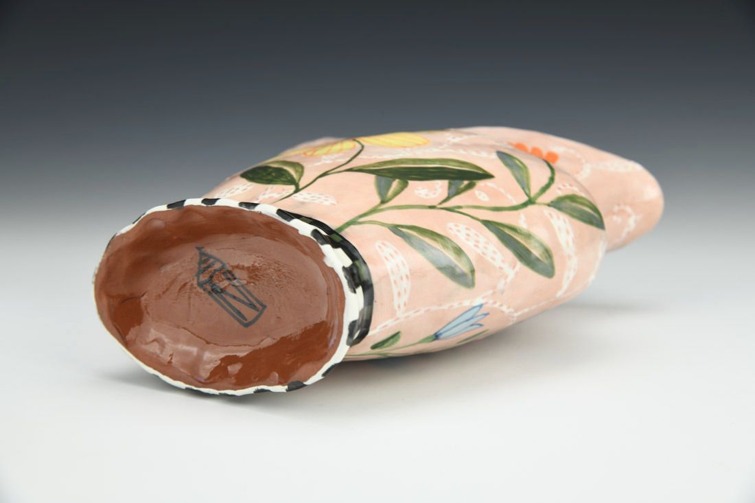 Red earthenware, hand built, underglaze, glaze, cone 04 fired, 8 x 6 x 2.5 inches.