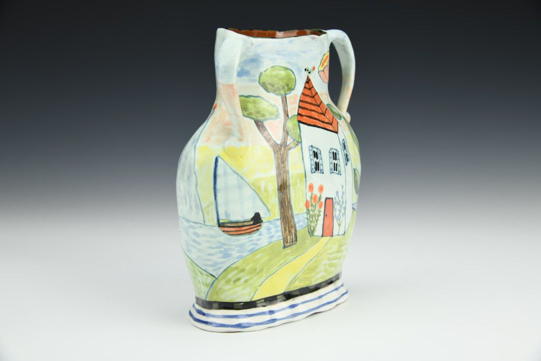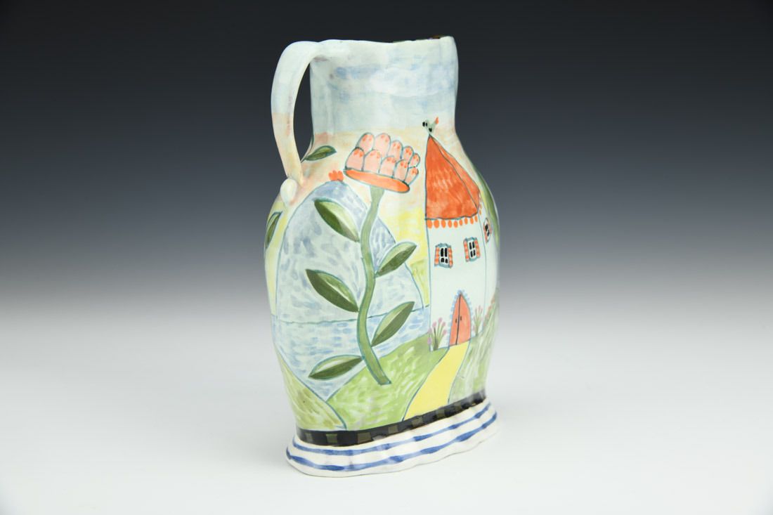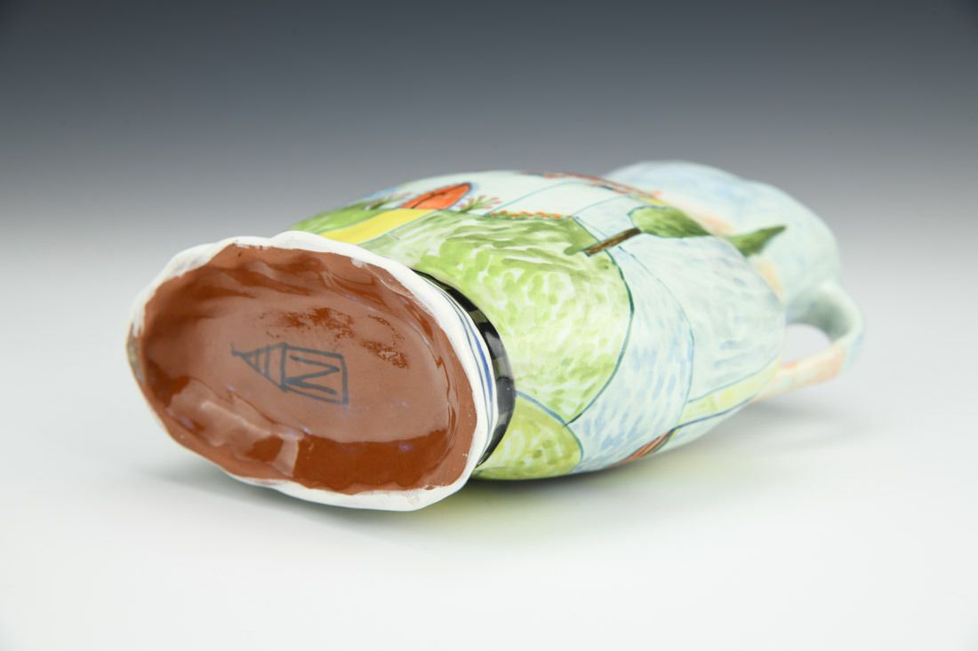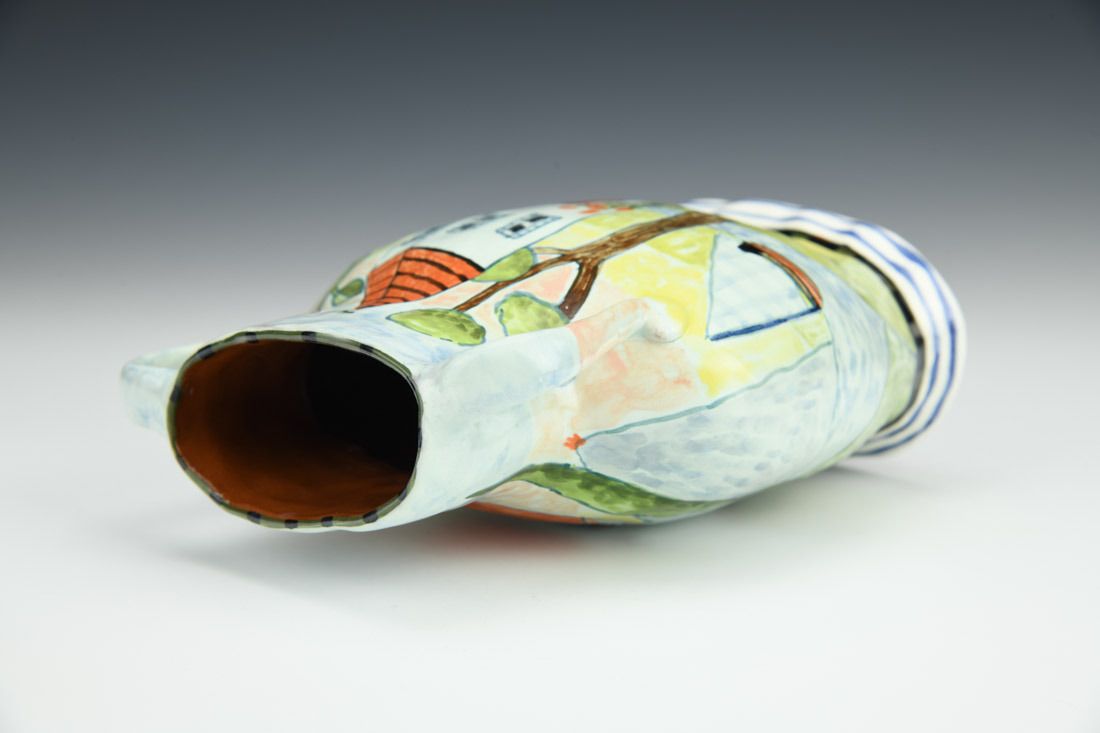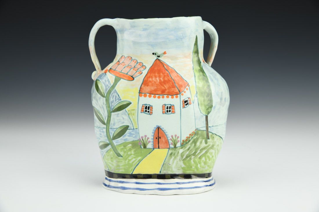 Red earthenware, hand built, underglaze, glaze, cone 04 fired, 6 x 5 x 2.5 inches.