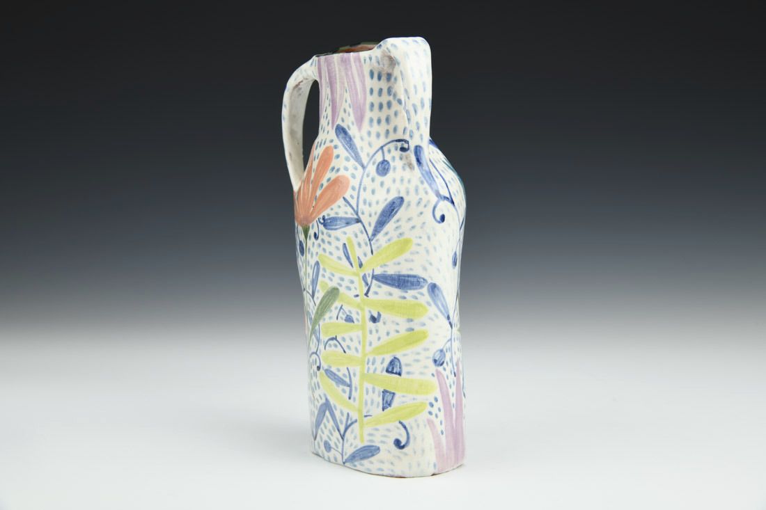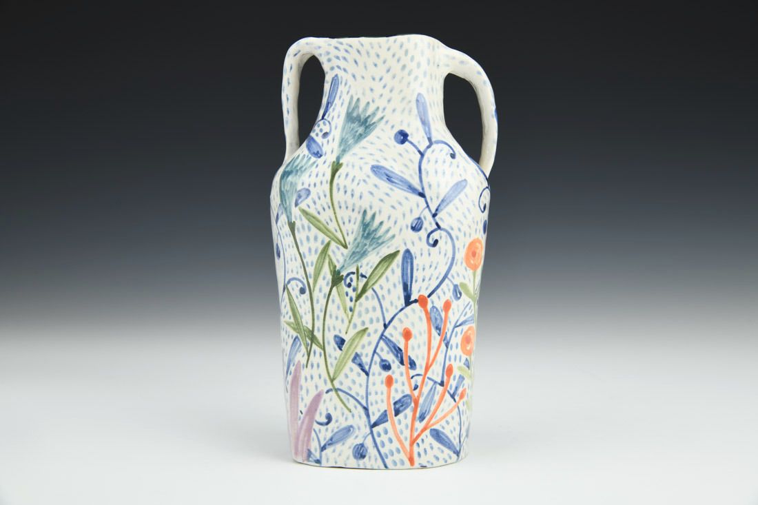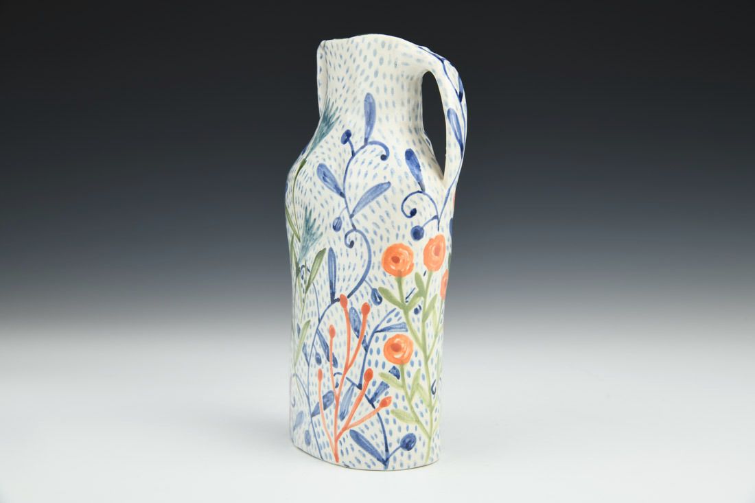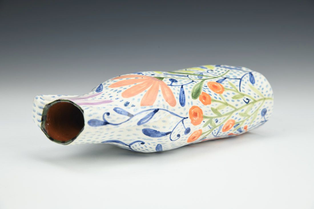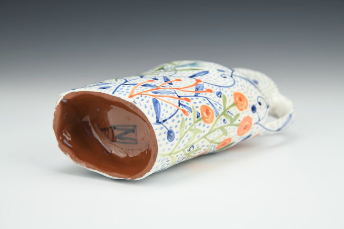 Red earthenware, hand built, underglaze, glaze, cone 04 fired, 6.5 x 3.5 x 2.5 inches.