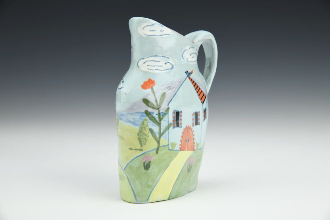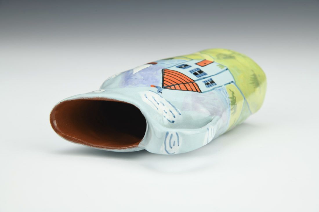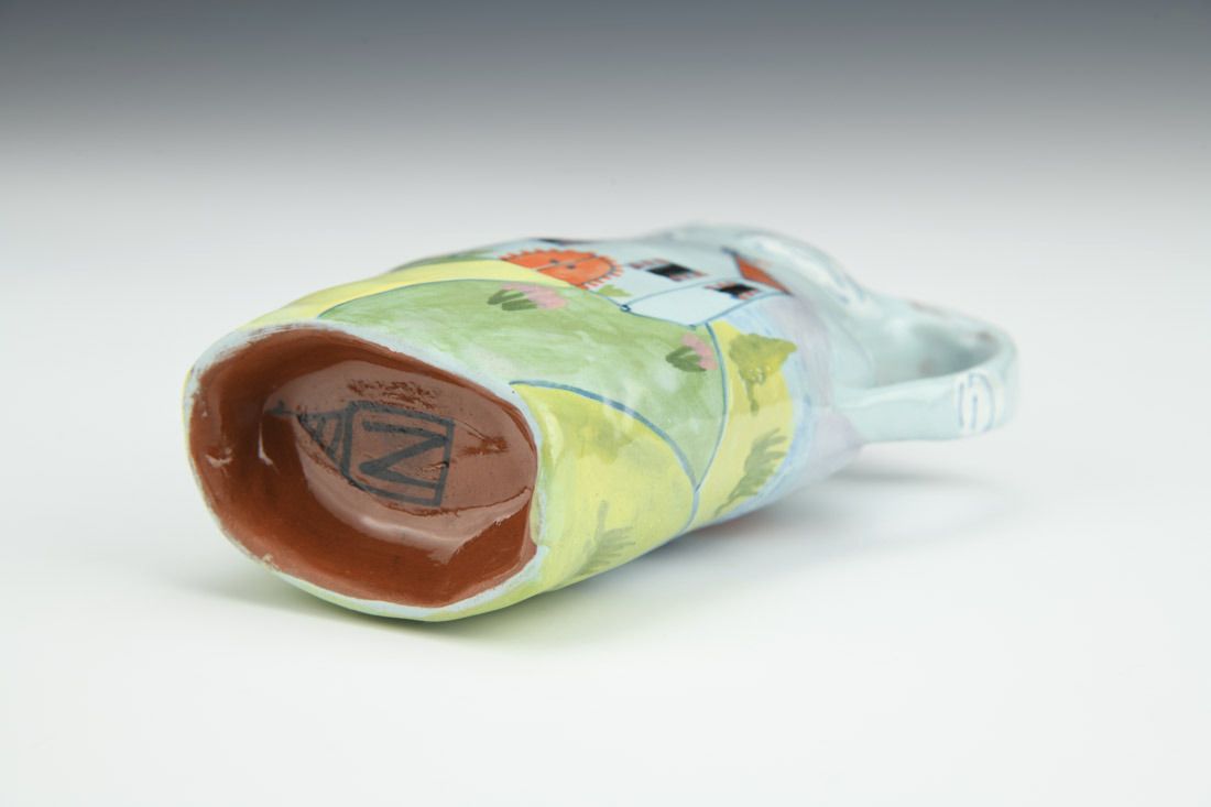 Red earthenware, hand built, underglaze, glaze, cone 04 fired, 5 x 3.5 x 1.5 inches.