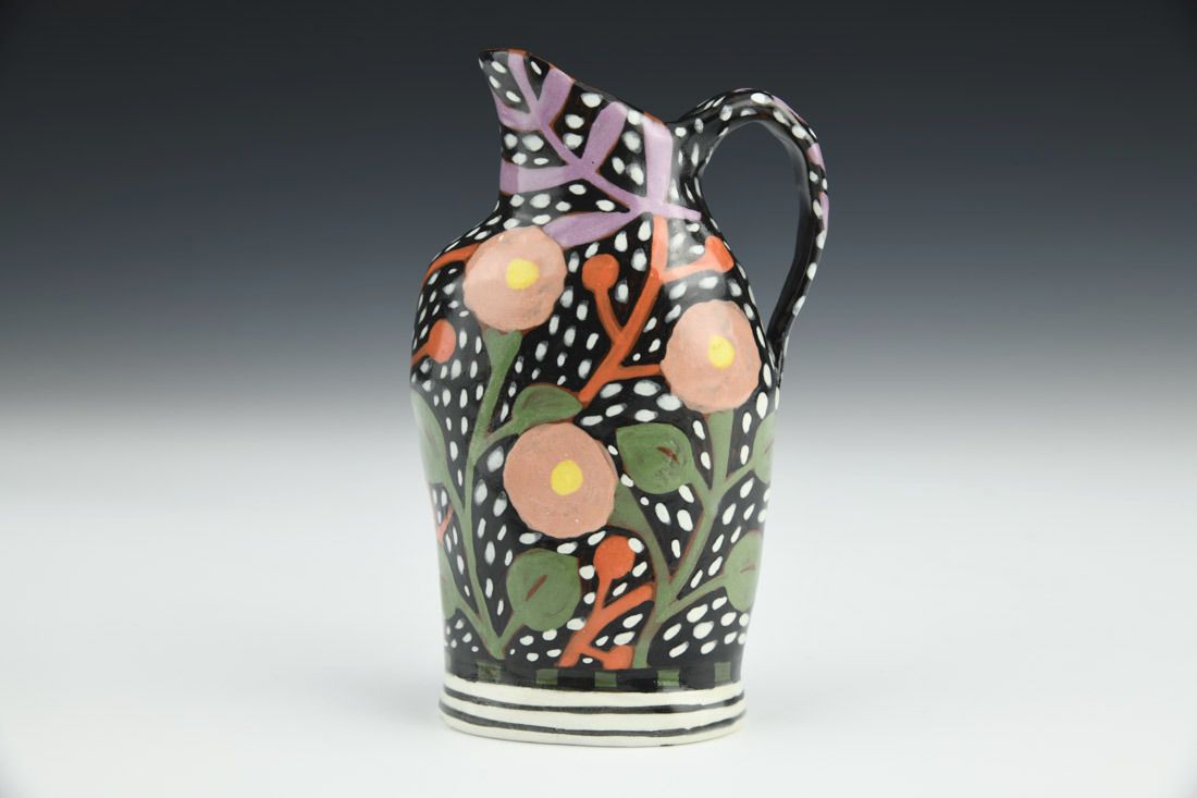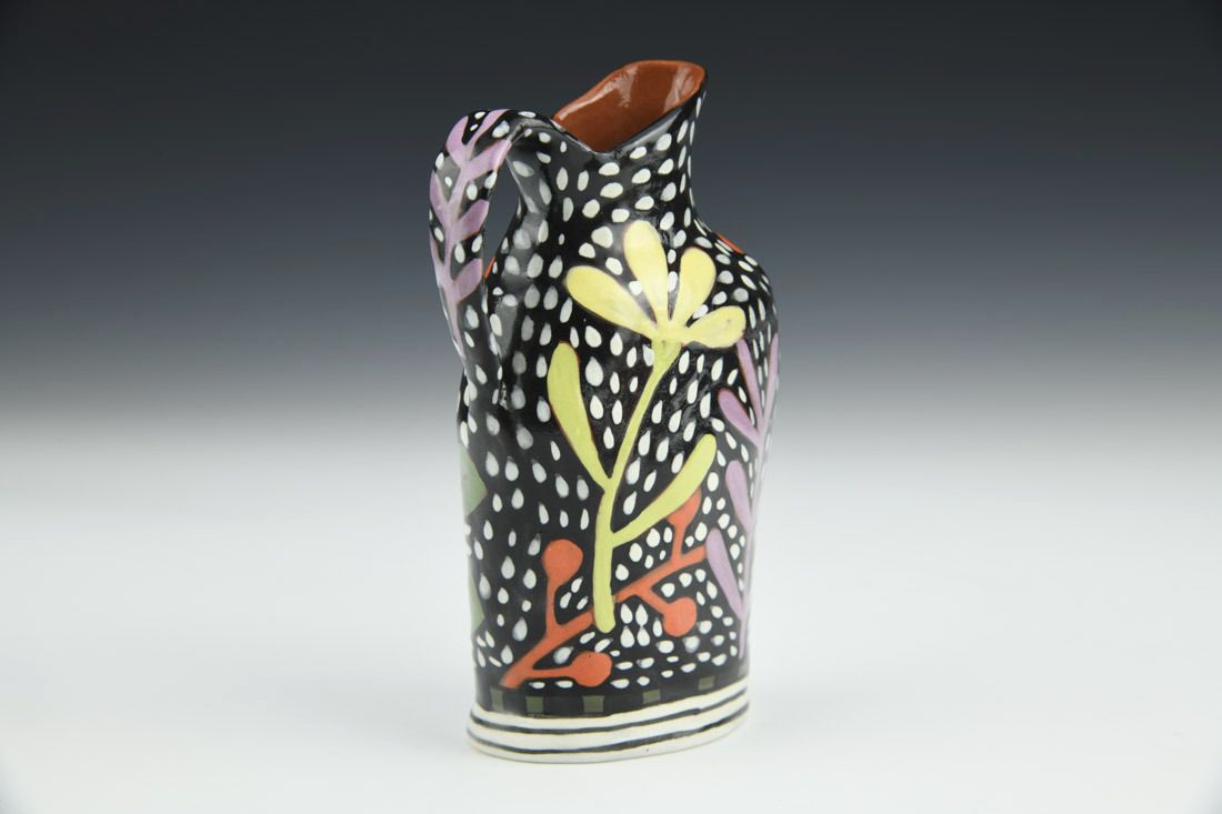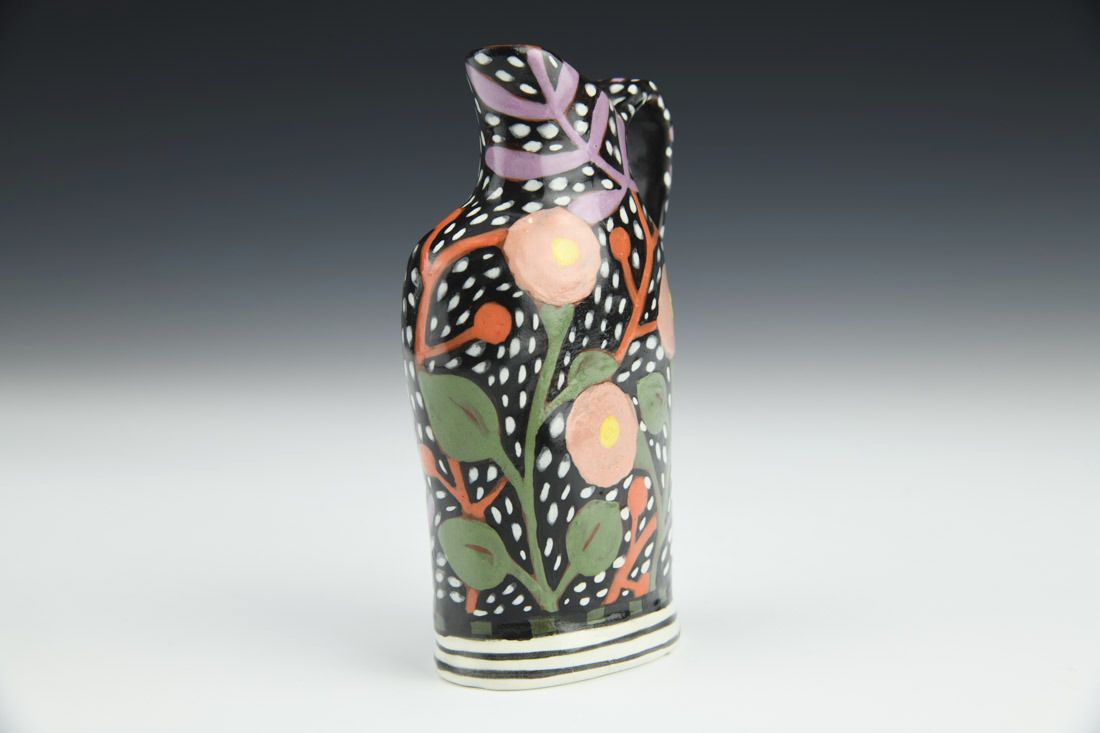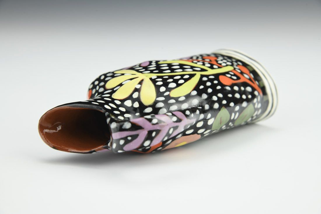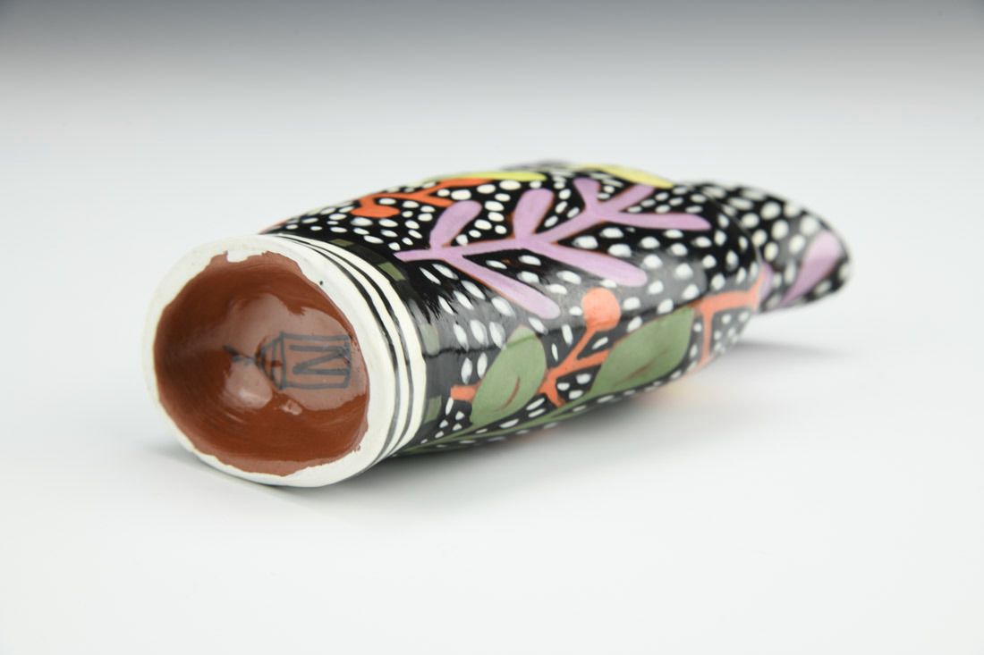 Red earthenware, hand built, underglaze, glaze, cone 04 fired, 5 x 3 x 1.5 inches.