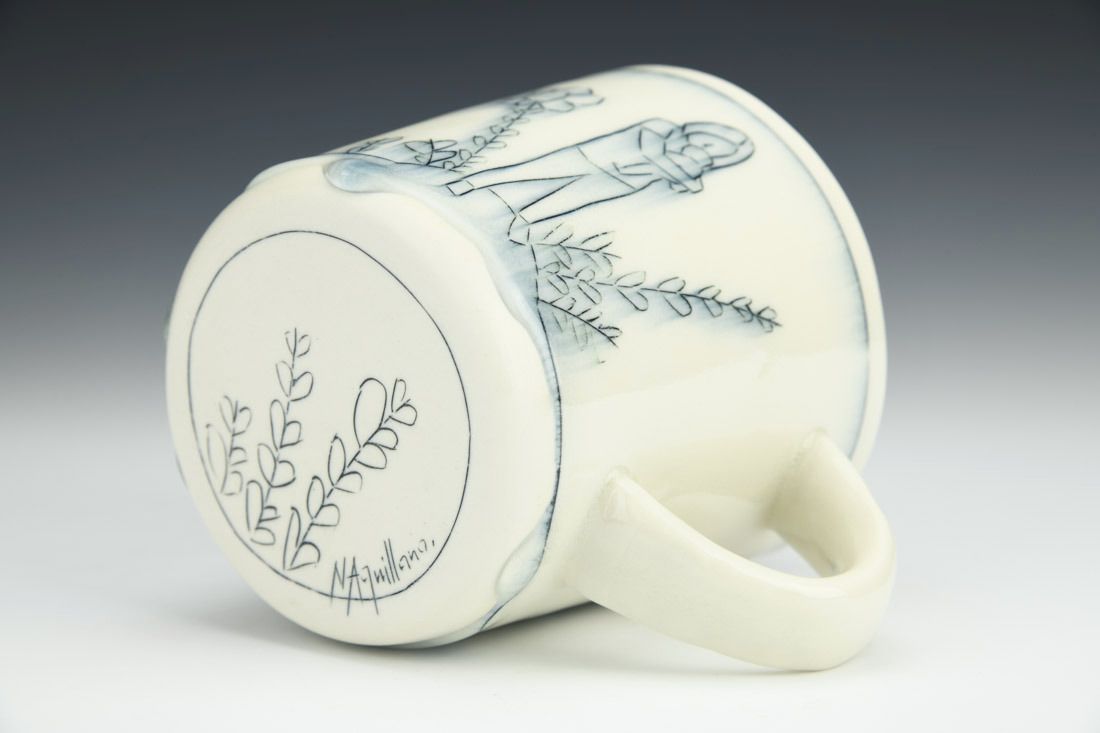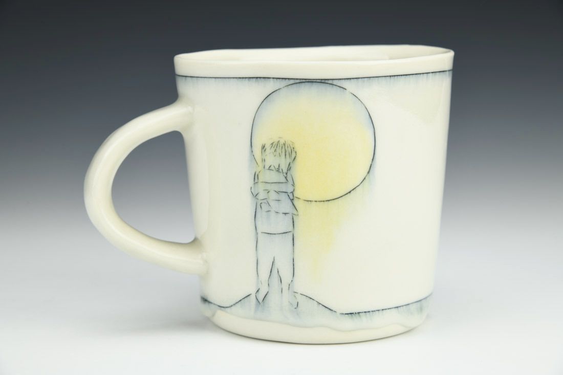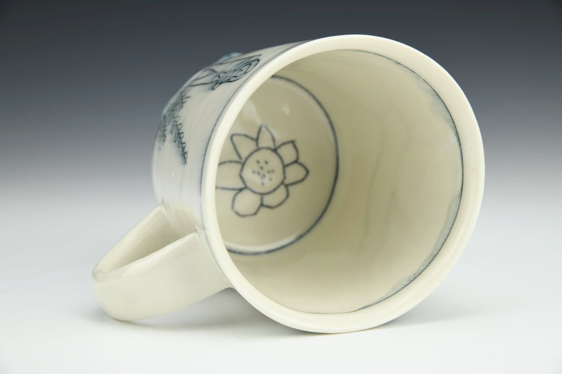 Porcelain, slipcast, mishima, cone 10 oxidation fired, 3.75 x 4.25 x 4 inches.