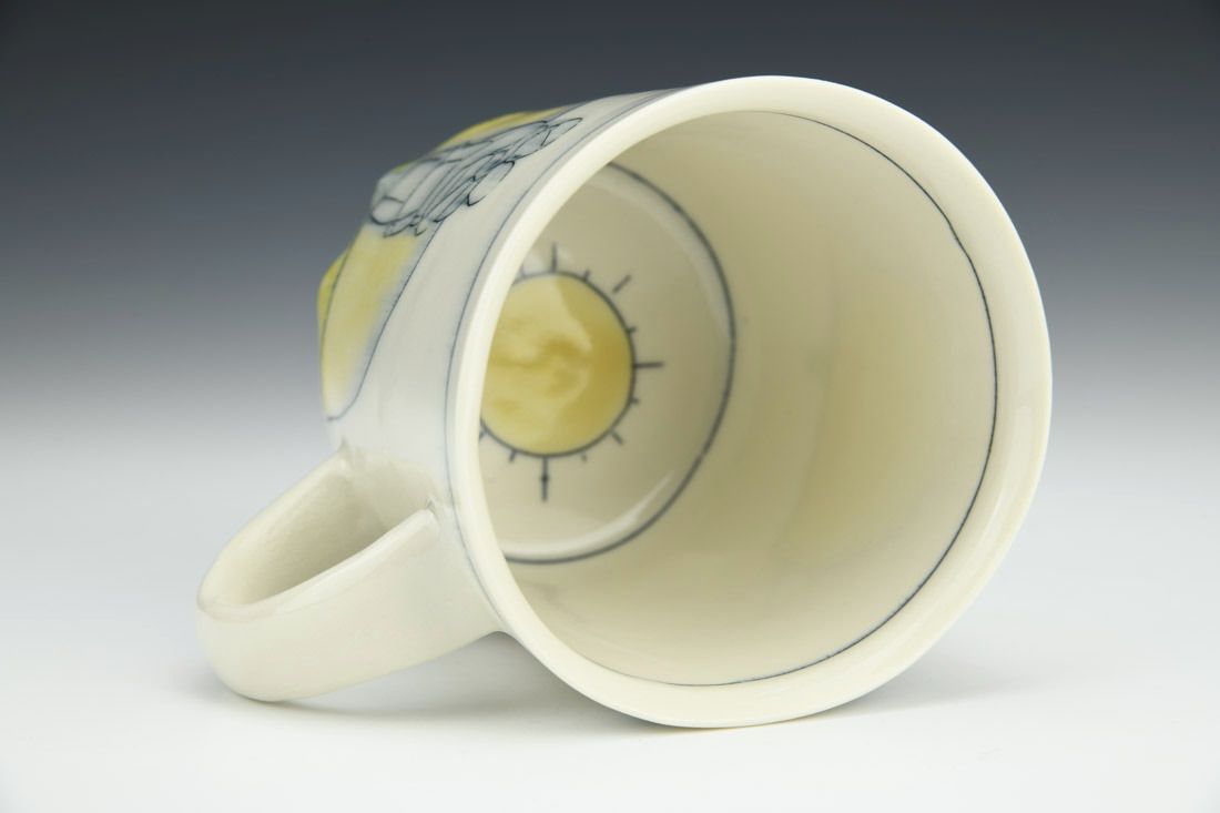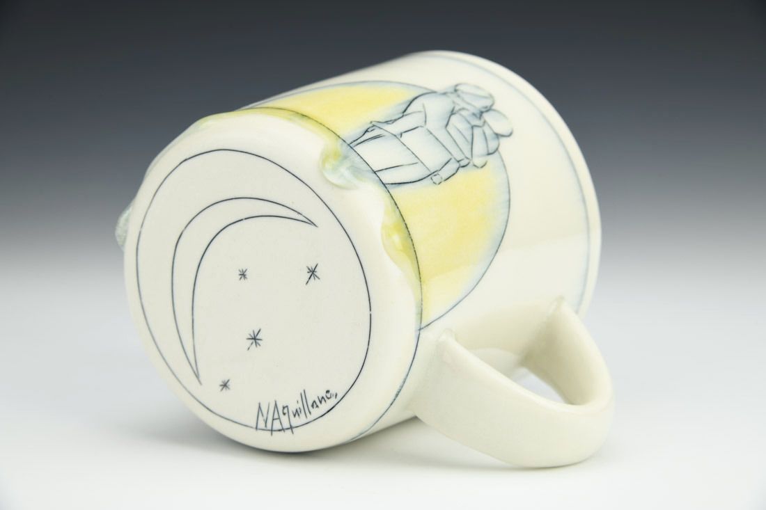 Porcelain, slipcast, mishima, cone 10 oxidation fired, 3.75 x 4.25 x 4 inches.
