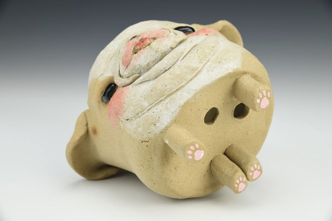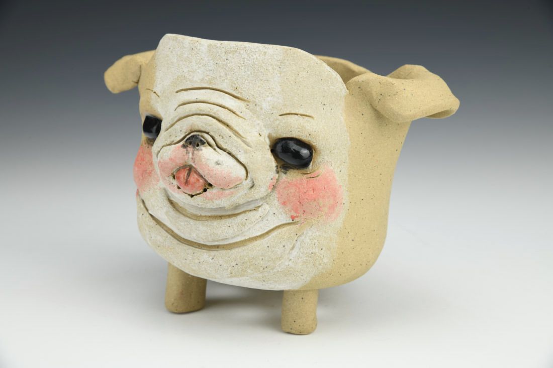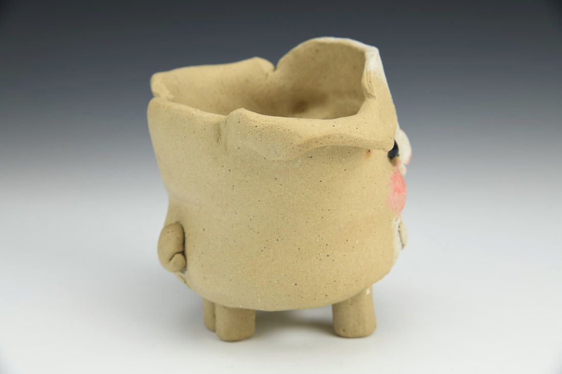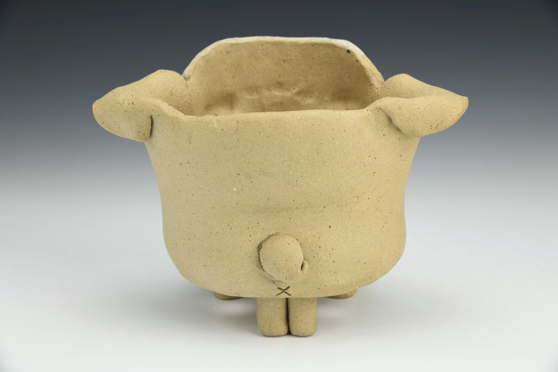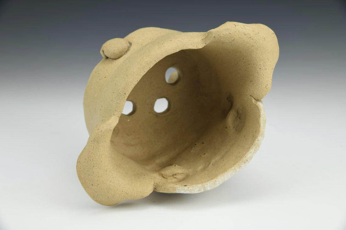 Stoneware, hand built with slabs, electric fired, 5 x 7 x 5 inches.