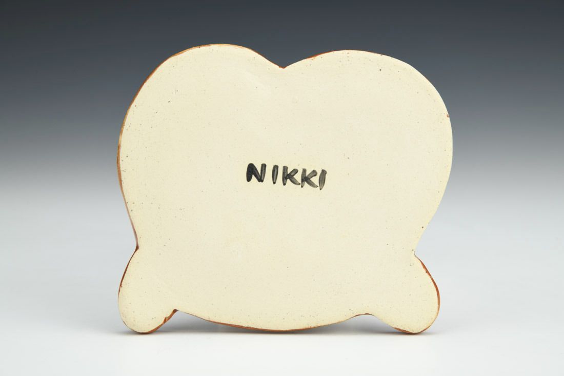 B-mix, hand built, underglaze, glaze, mid-range electric fired, 3.5 x 4 x 0.25 inches.