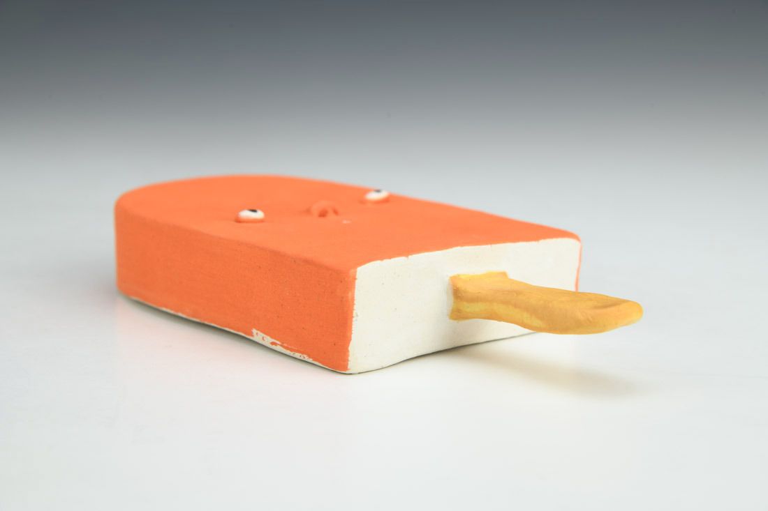 B-mix, hand built, underglaze, glaze, mid-range electric fired, 6.25 x 3 x 1 inches.
