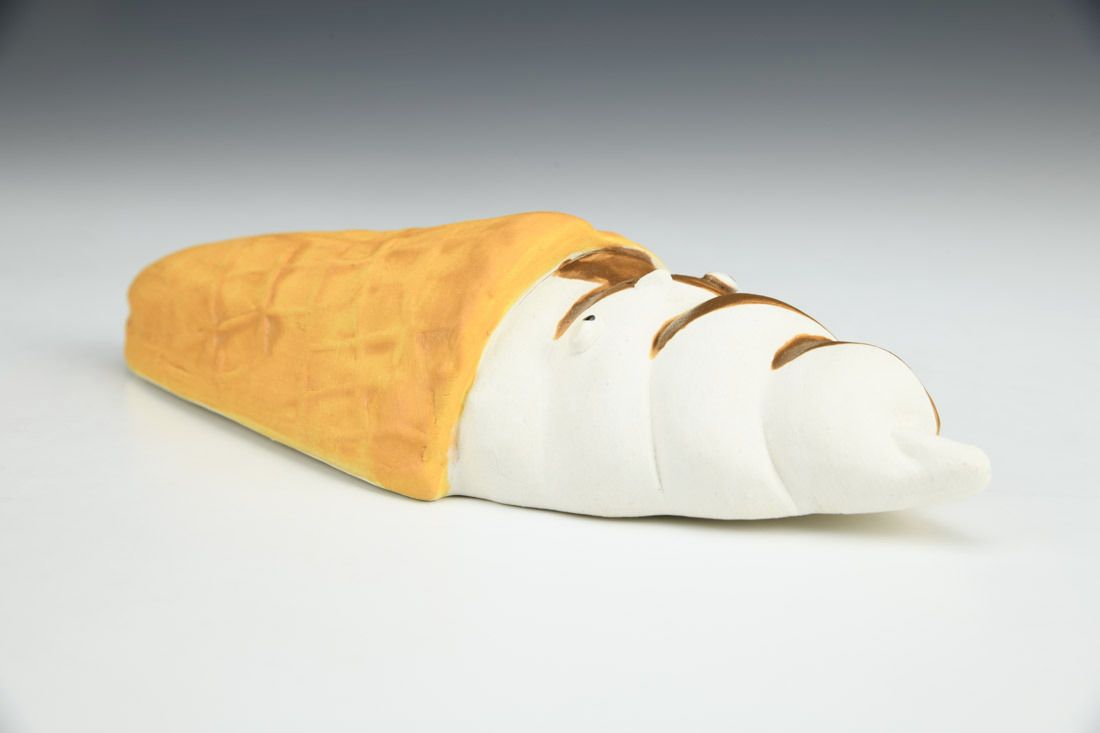B-mix, hand built, underglaze, glaze, mid-range electric fired, 7.5 x 3.25 x 2 inches.