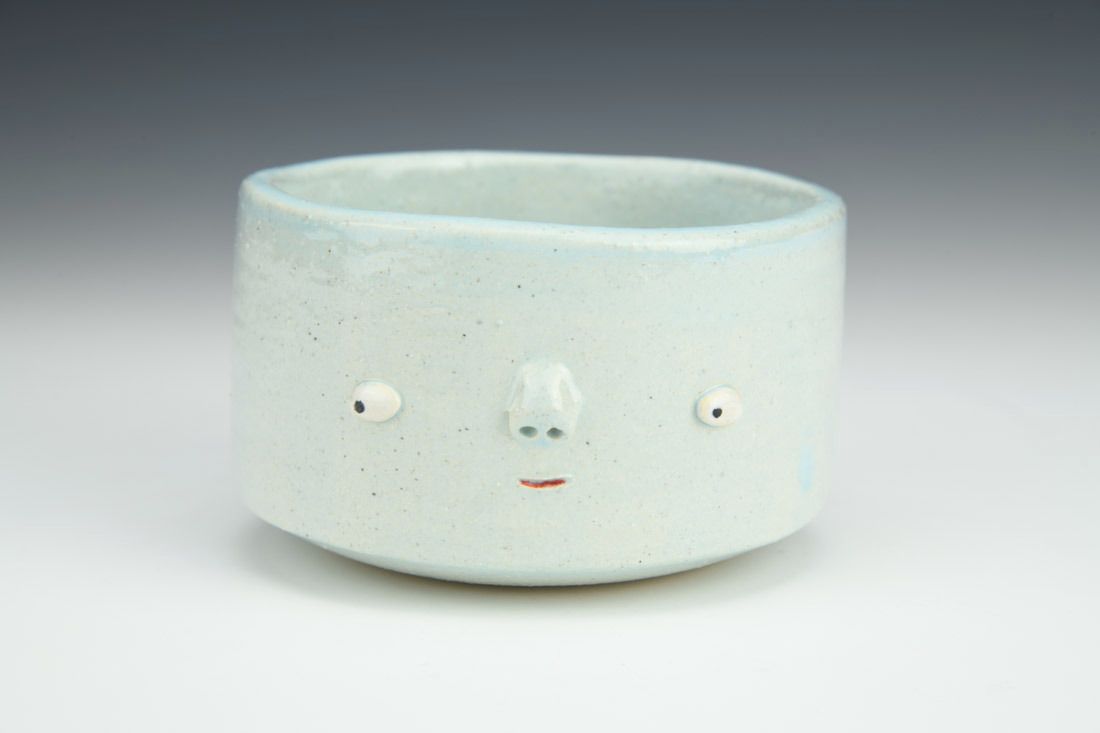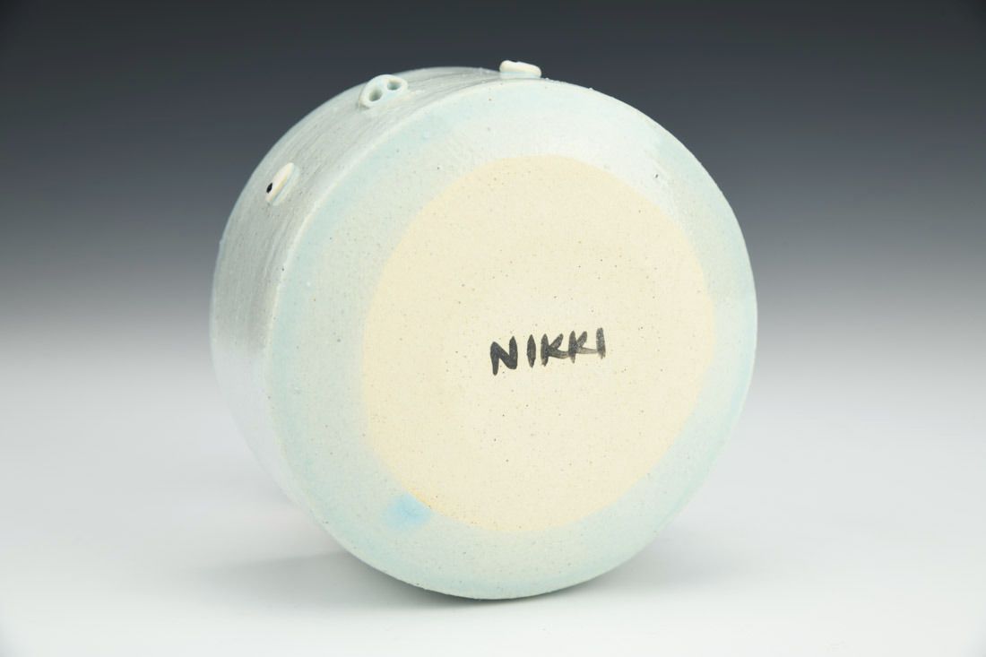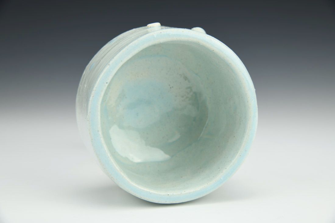 Stoneware, hand built, glaze, underglaze, mid-range electric fired, 2.25 x 4 x 4.25 inches.