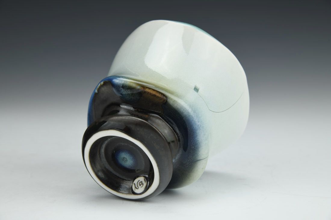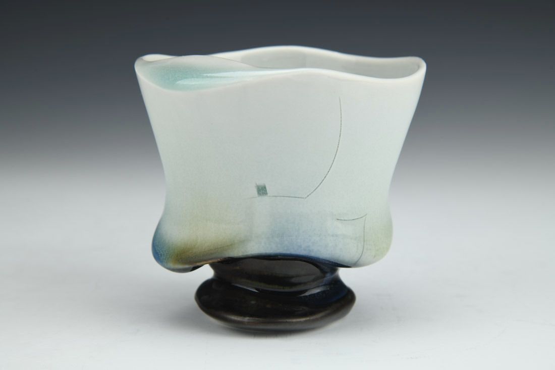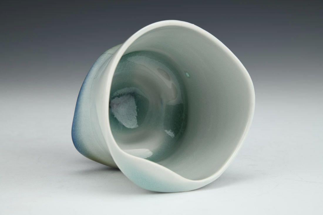 Porcelain, wheel thrown, cone 10 reduction fired, 3.5 x 3.5 x 3.5 inches.