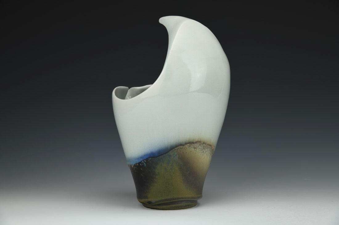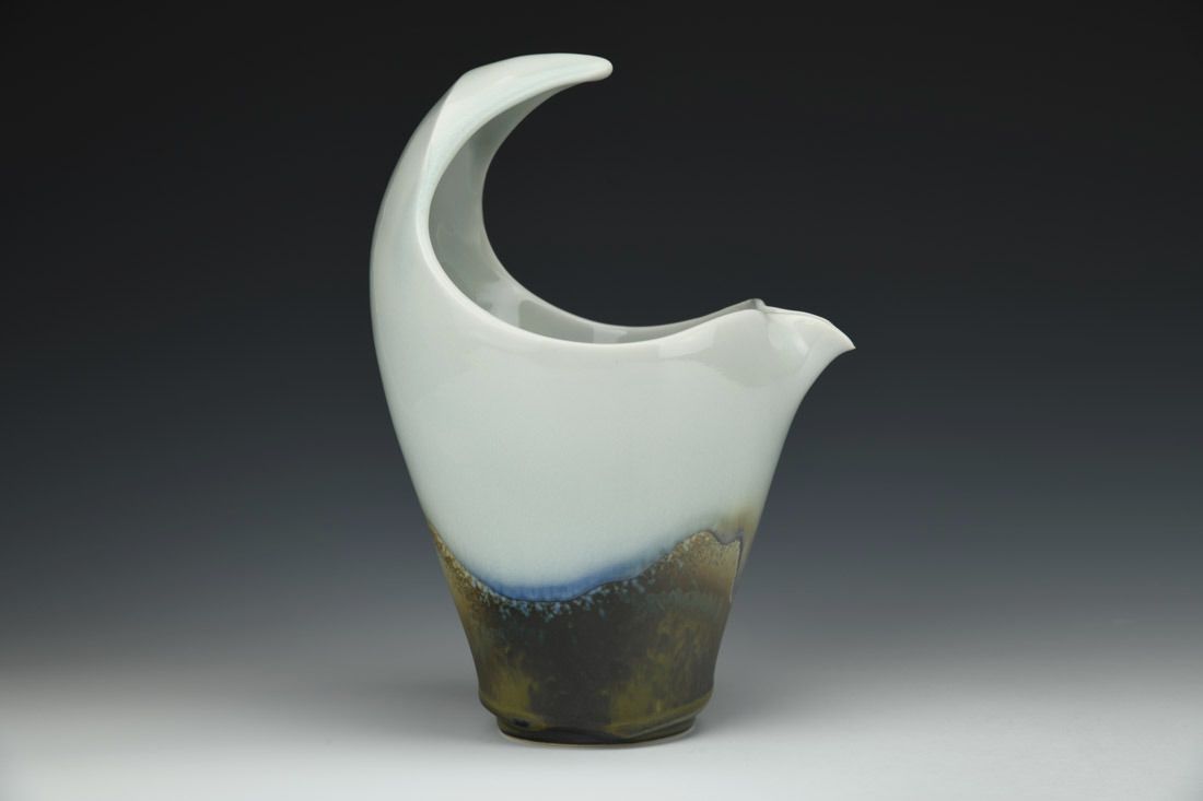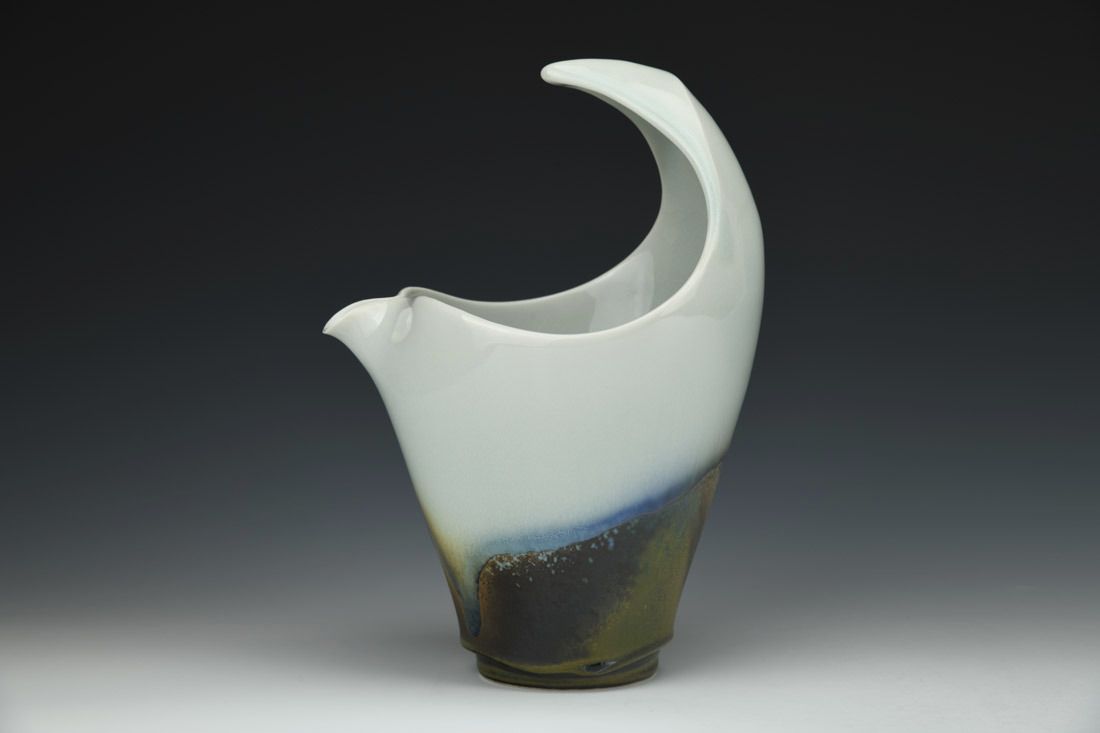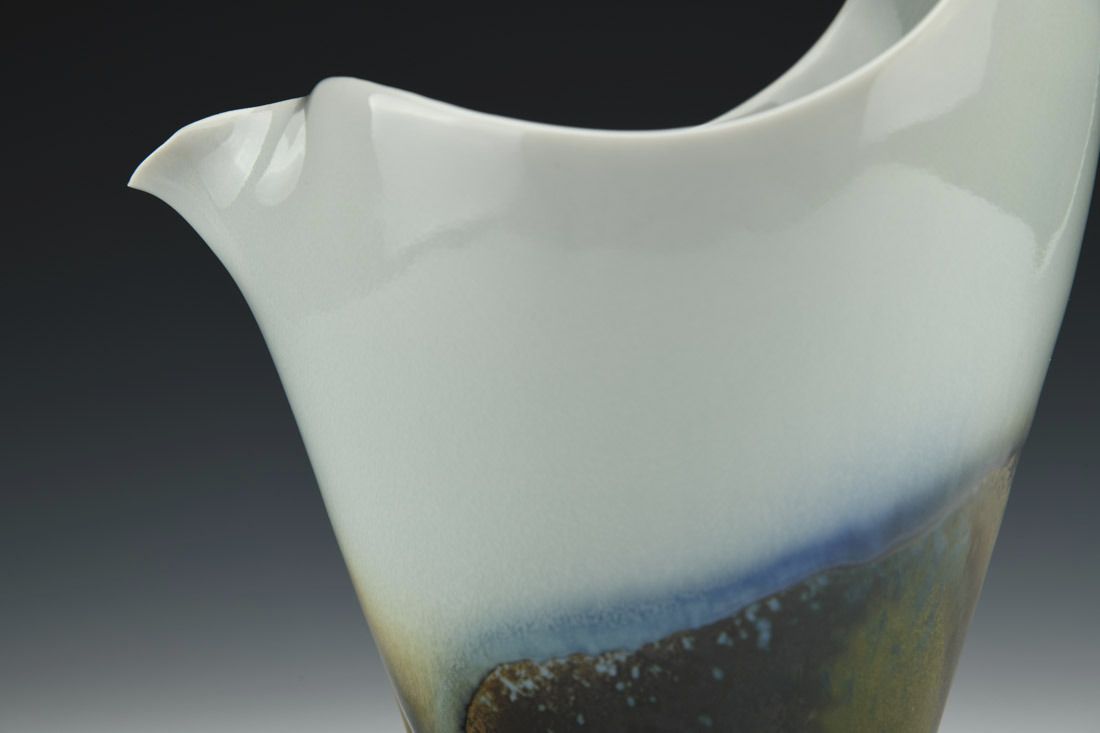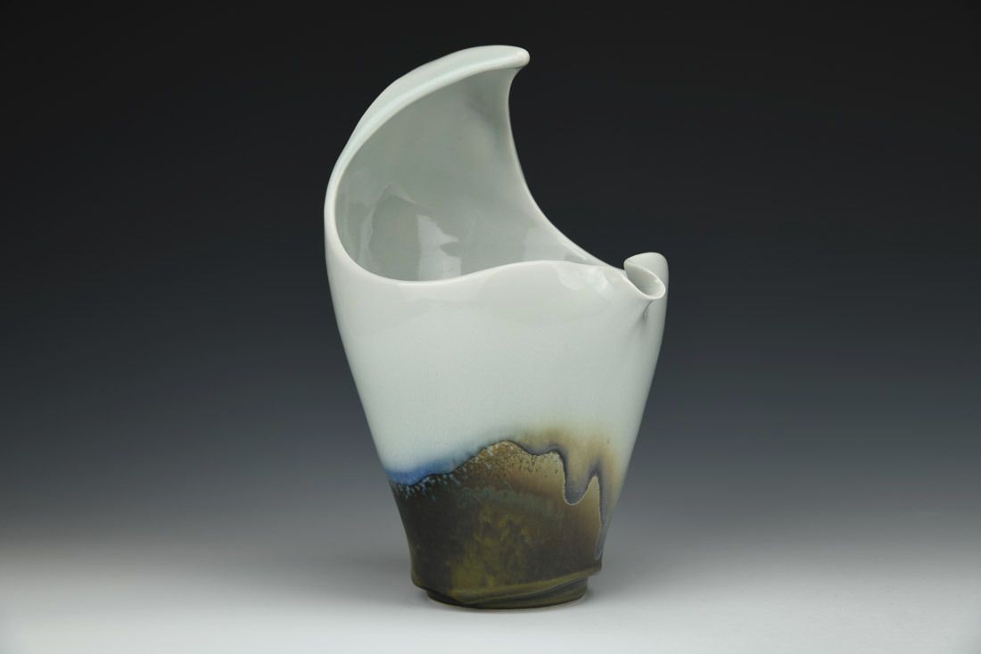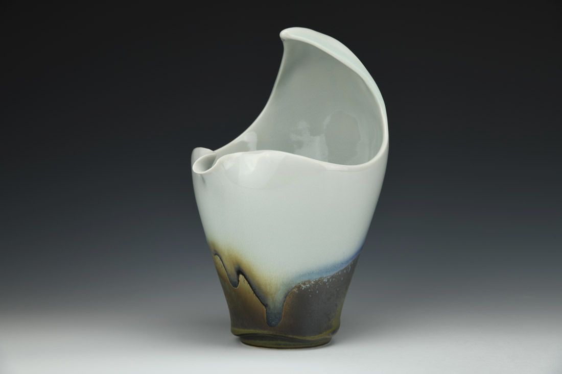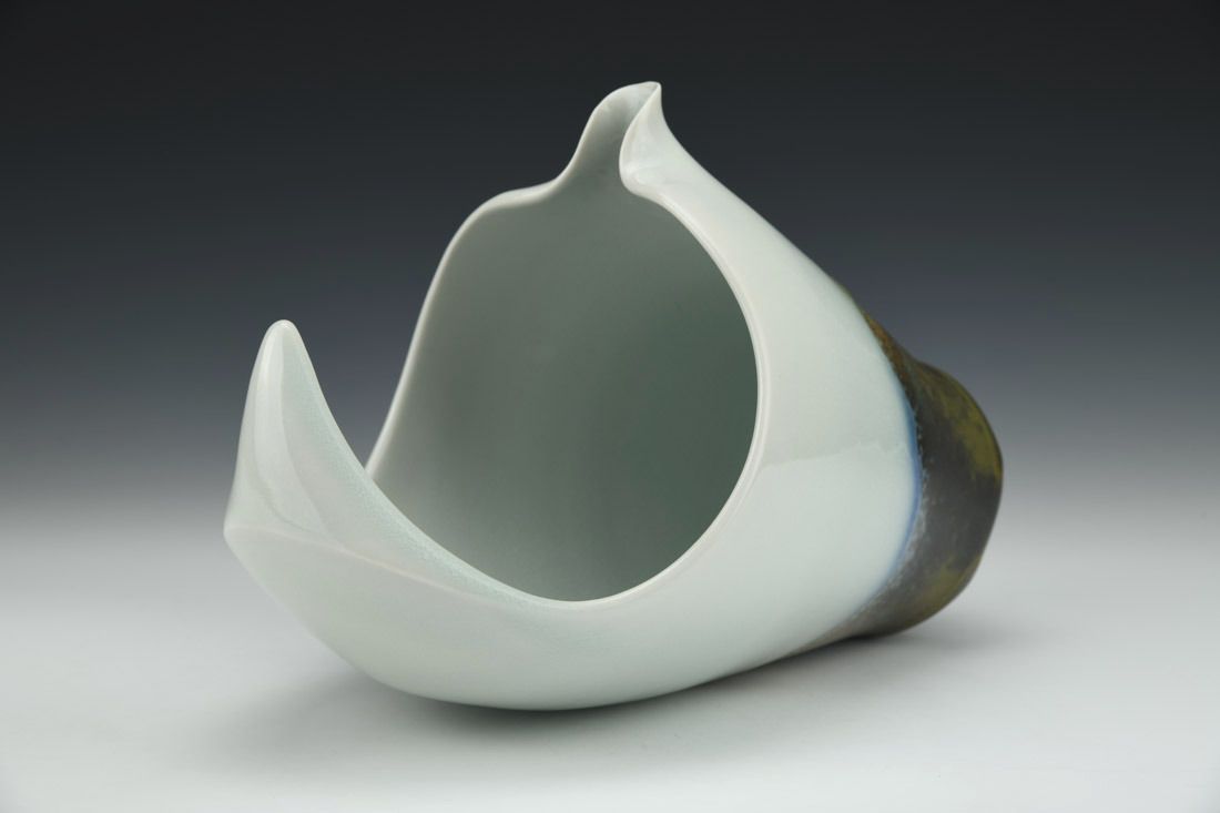 Porcelain, wheel thrown and hand built, cone 10 reduction fired, 9.75 x 6.75 x 6 inches.