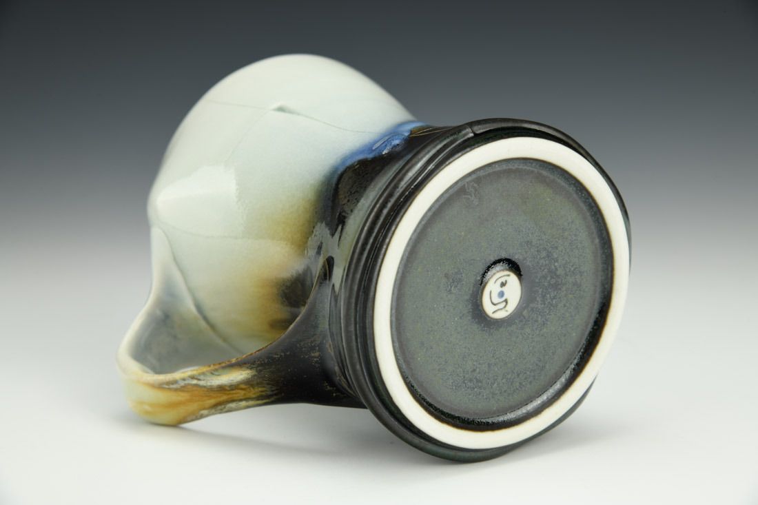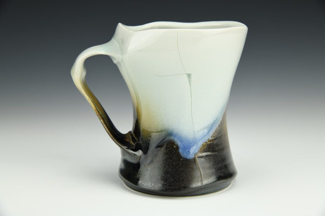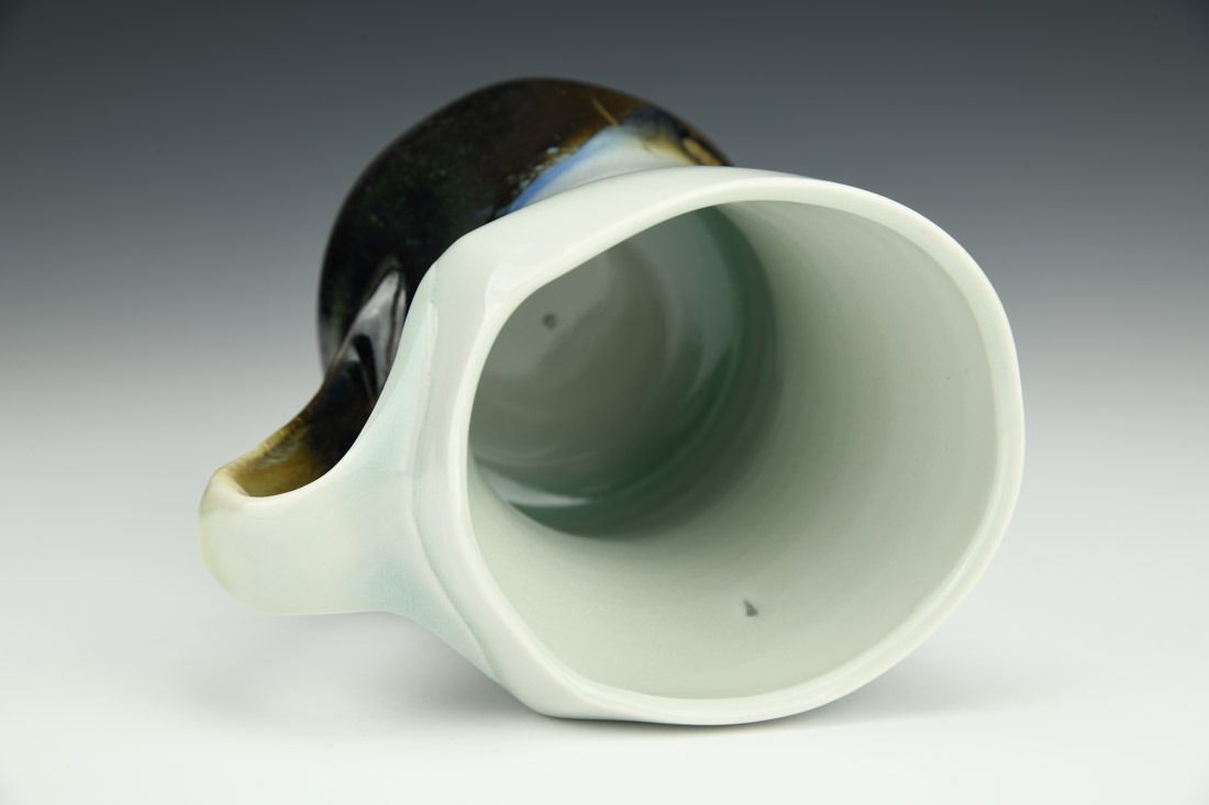 Porcelain, wheel thrown and hand built, cone 10 reduction fired, 4.75 x 5 x 3.5 inches.