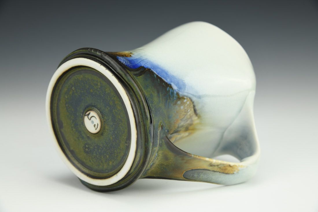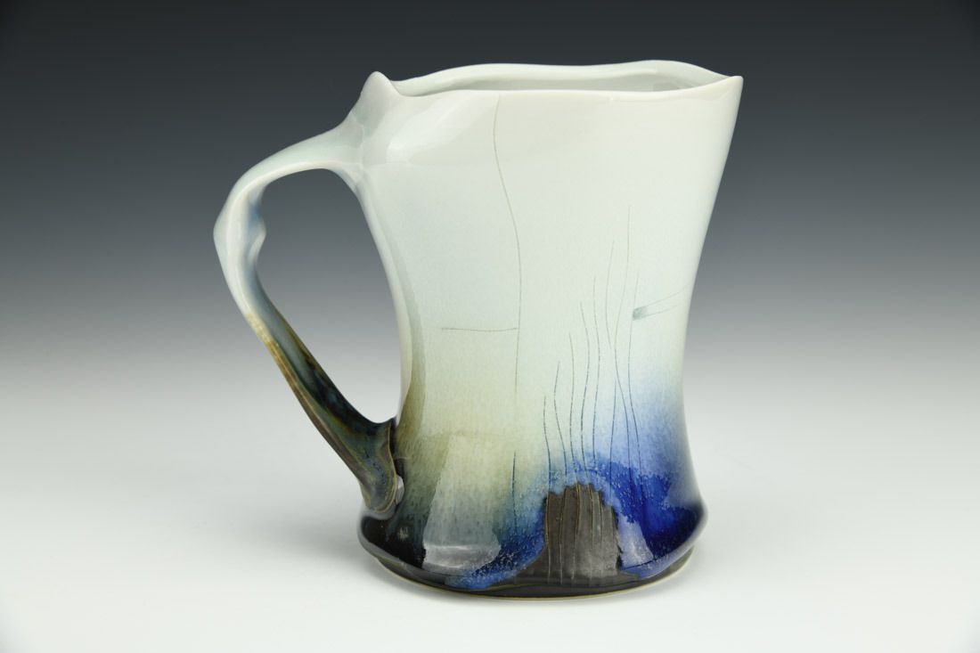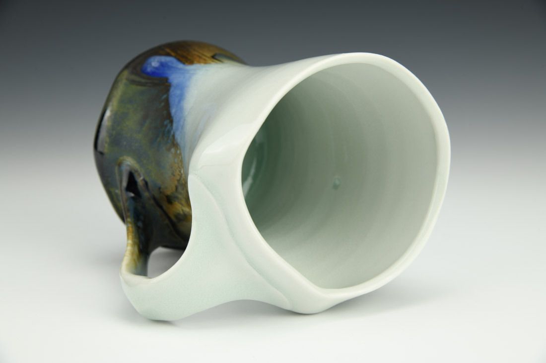 Porcelain, wheel thrown and hand built, cone 10 reduction fired, 4.5 x 5 x 3.5 inches.