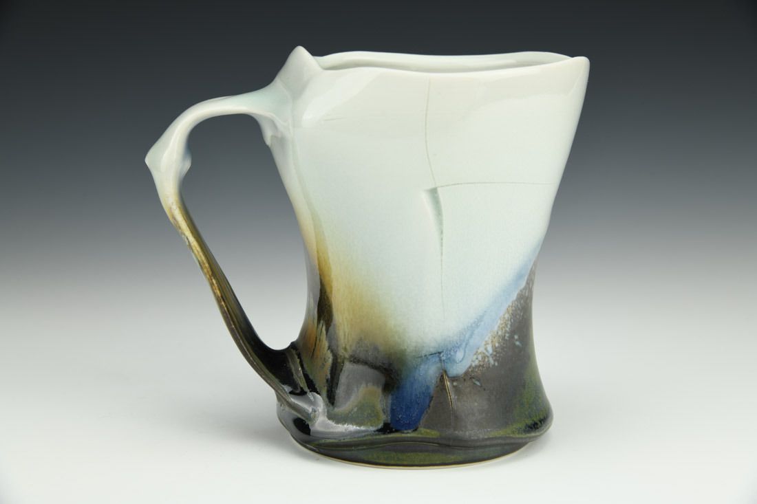 Porcelain, wheel thrown and hand built, cone 10 reduction fired, 4.75 x 5.25 x 3.75 inches.