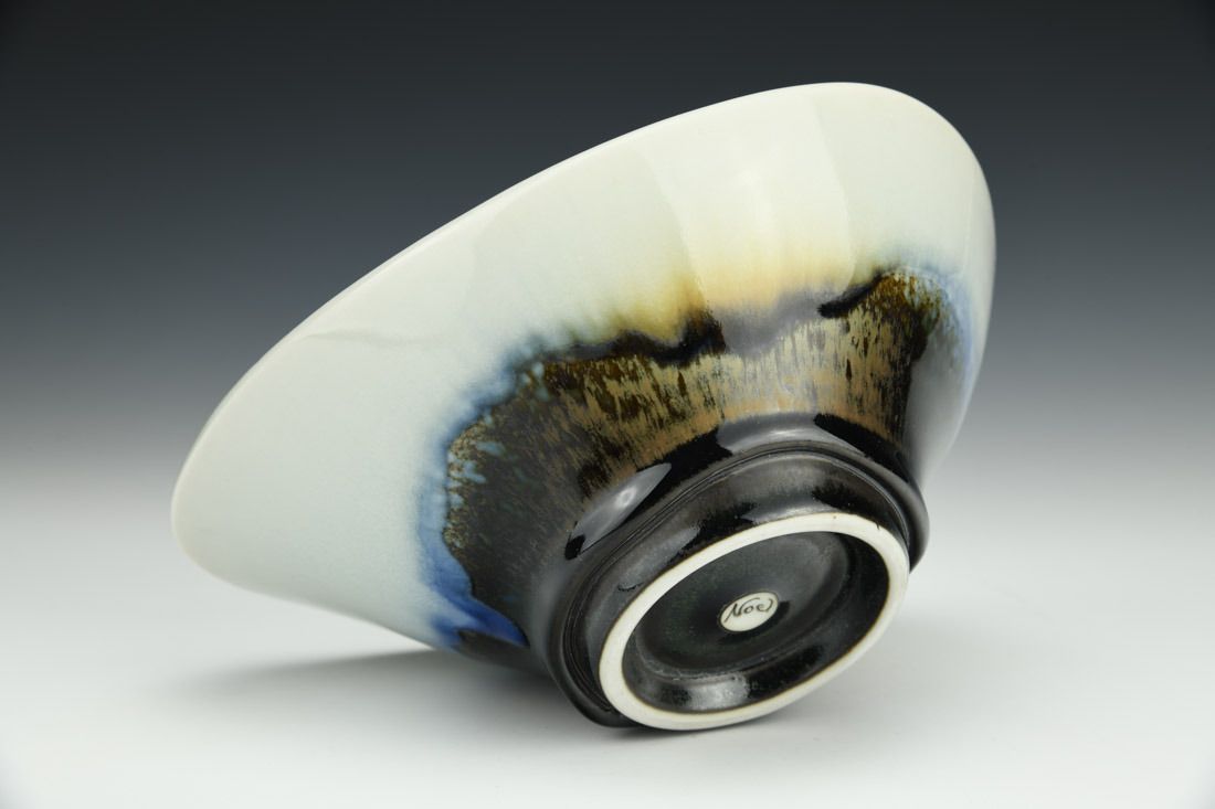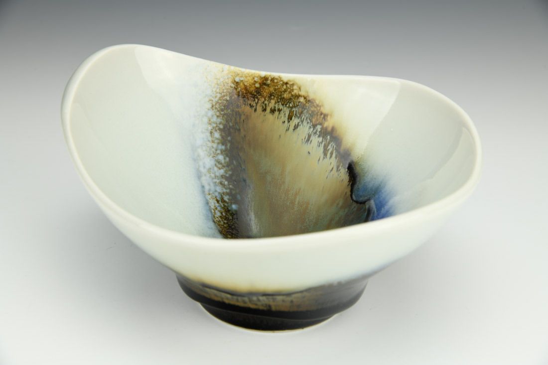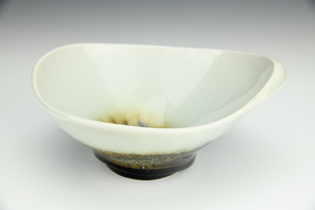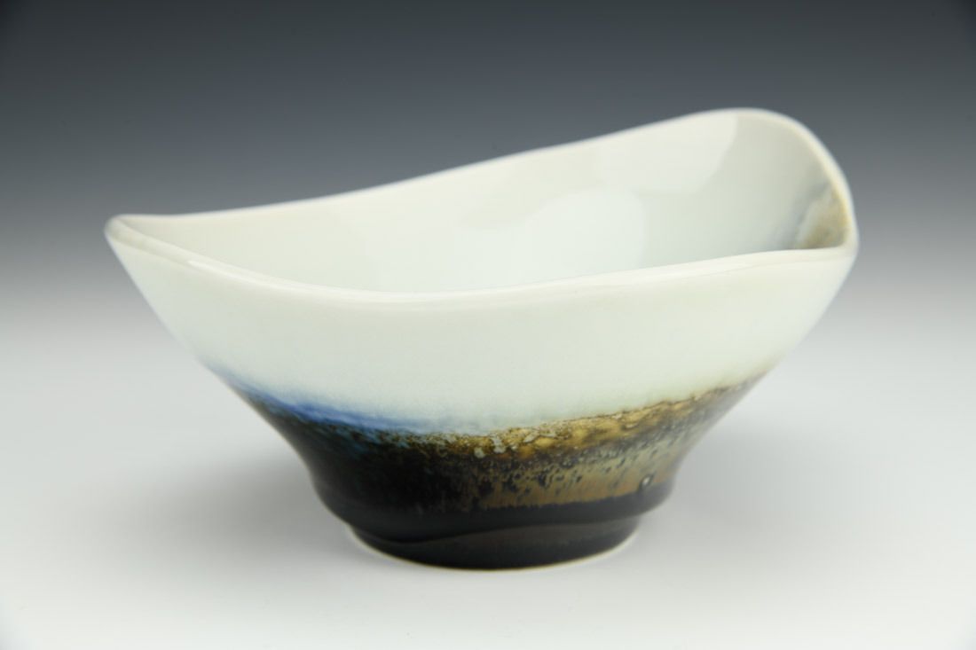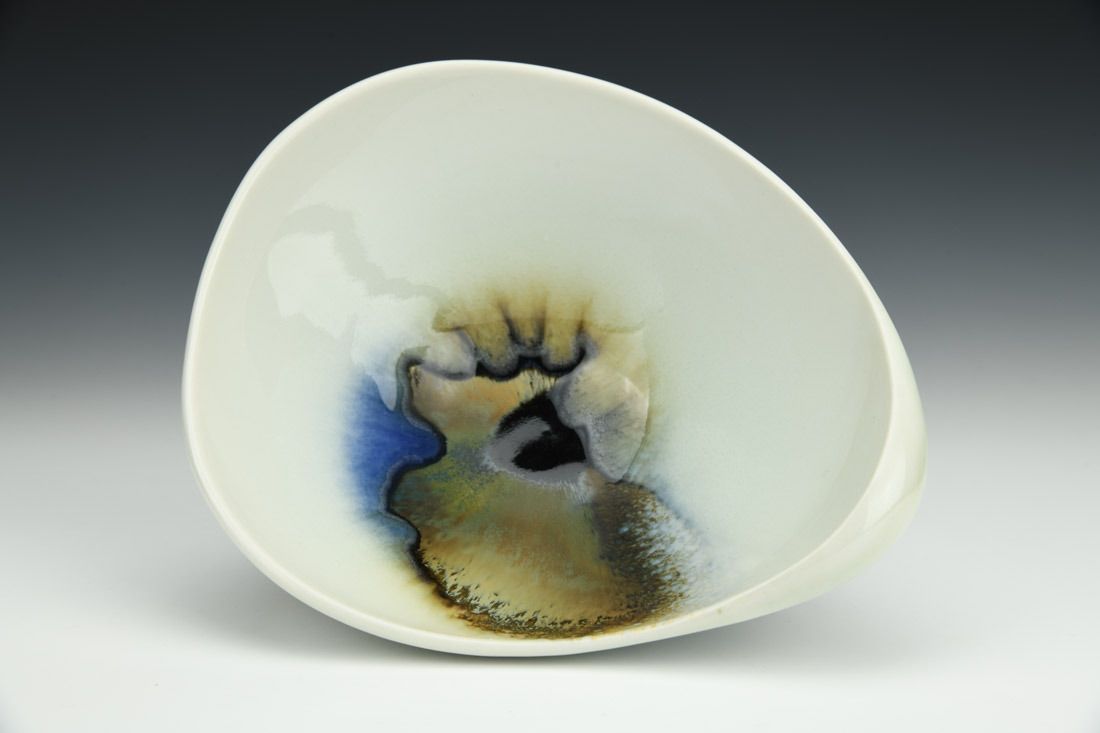 Porcelain, wheel thrown and hand built, cone 10 reduction fired, 3.25 x 7 x 6 inches.