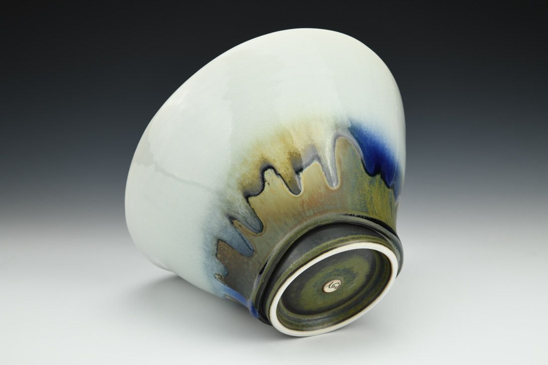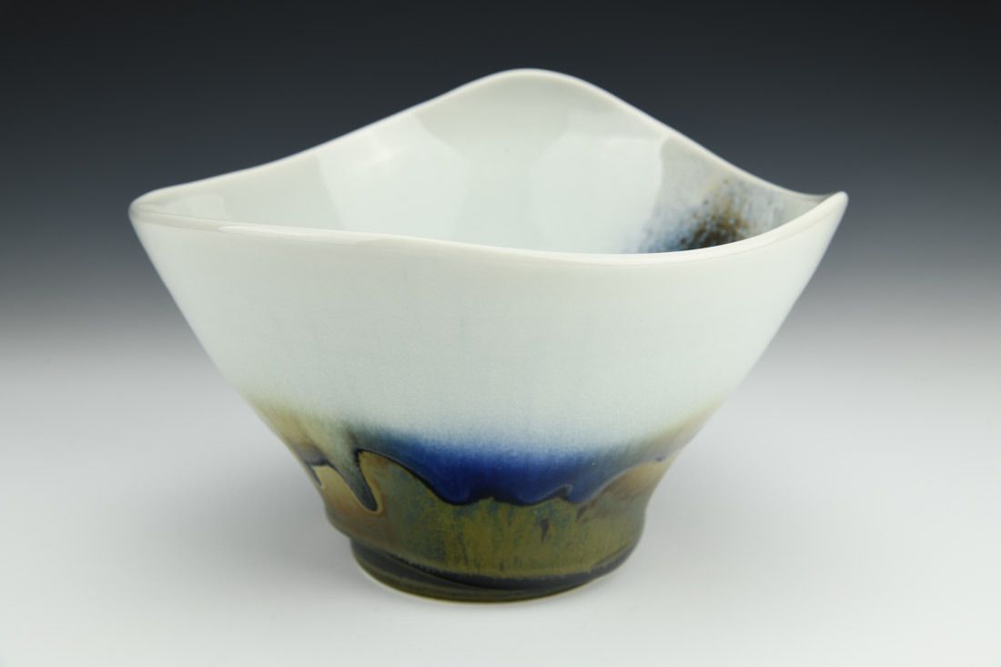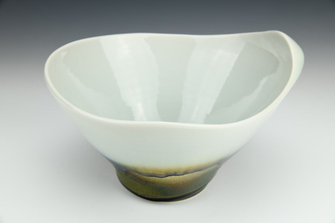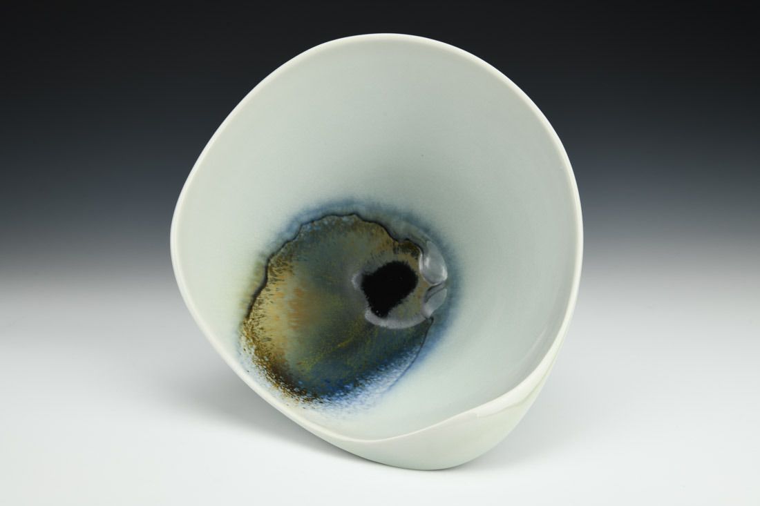 Porcelain, wheel thrown and hand built, cone 10 reduction fired, 5.75 x 9.5 x 8.5 inches.
