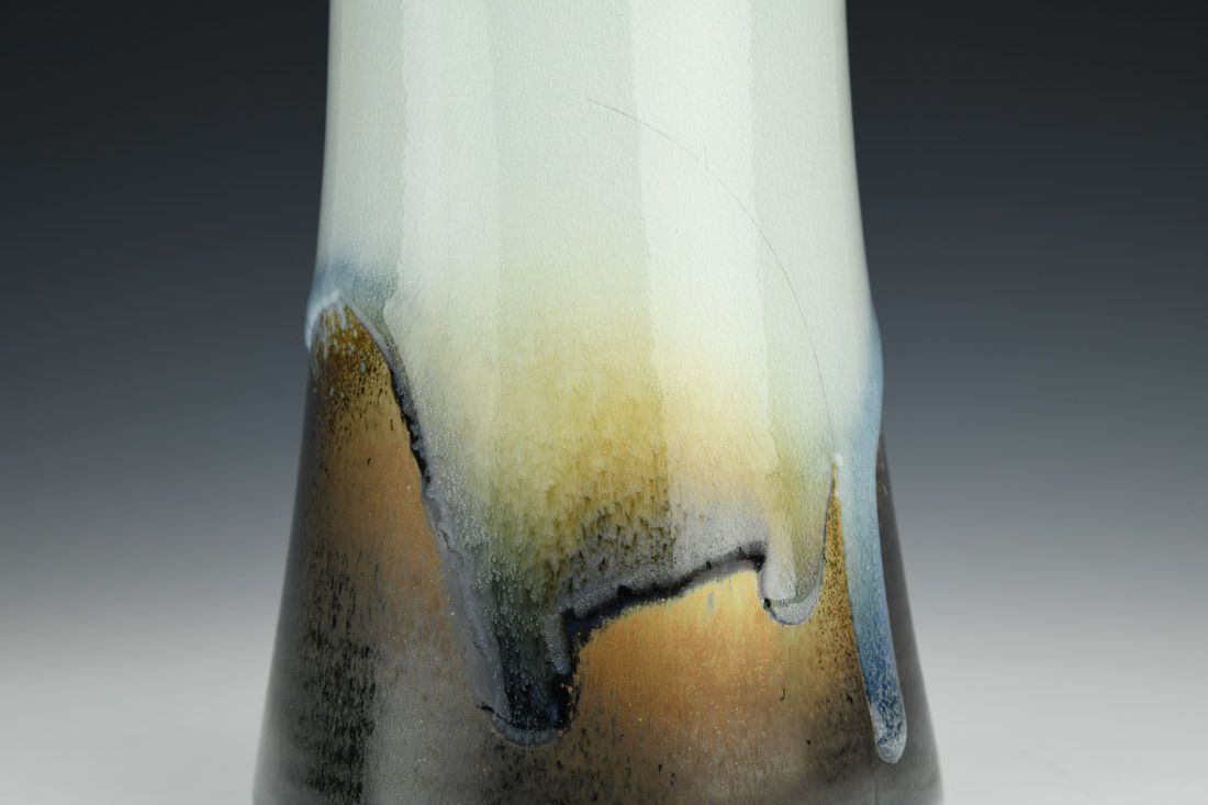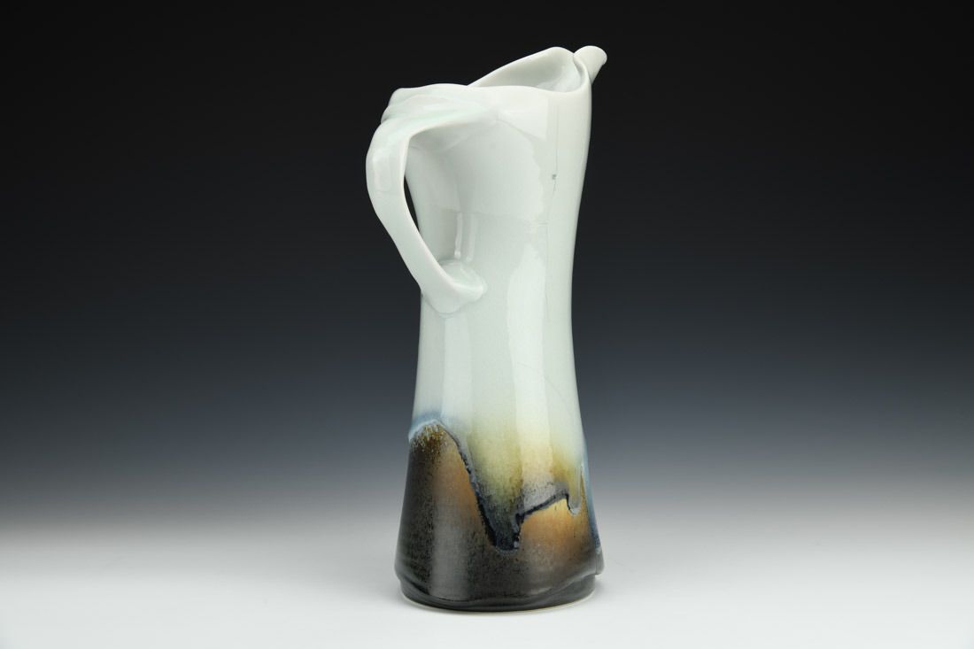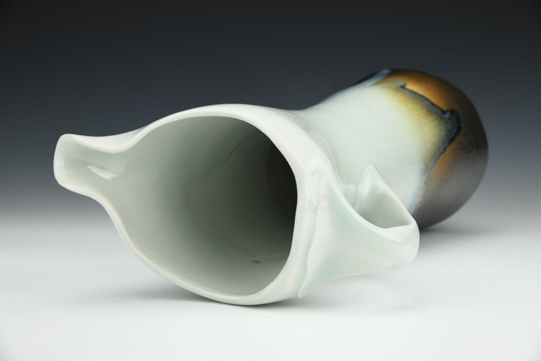 Porcelain, wheel thrown and hand built, cone 10 reduction fired, 12.5 x 7.5 x 4.5 inches.