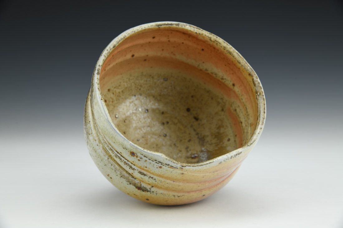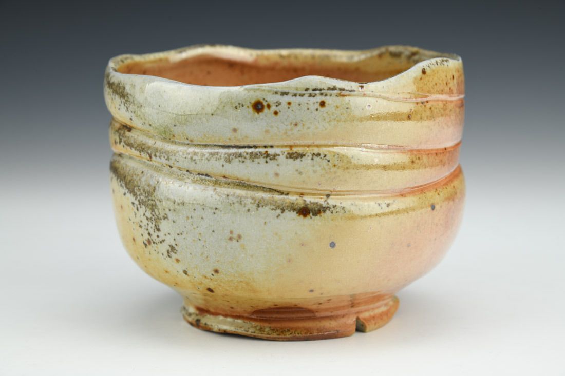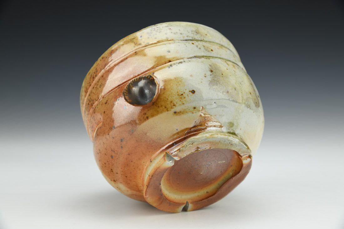 Stoneware, wheel thrown, woodfired with slipcast sprig, 3.5 x 5 x 4.75 inches.