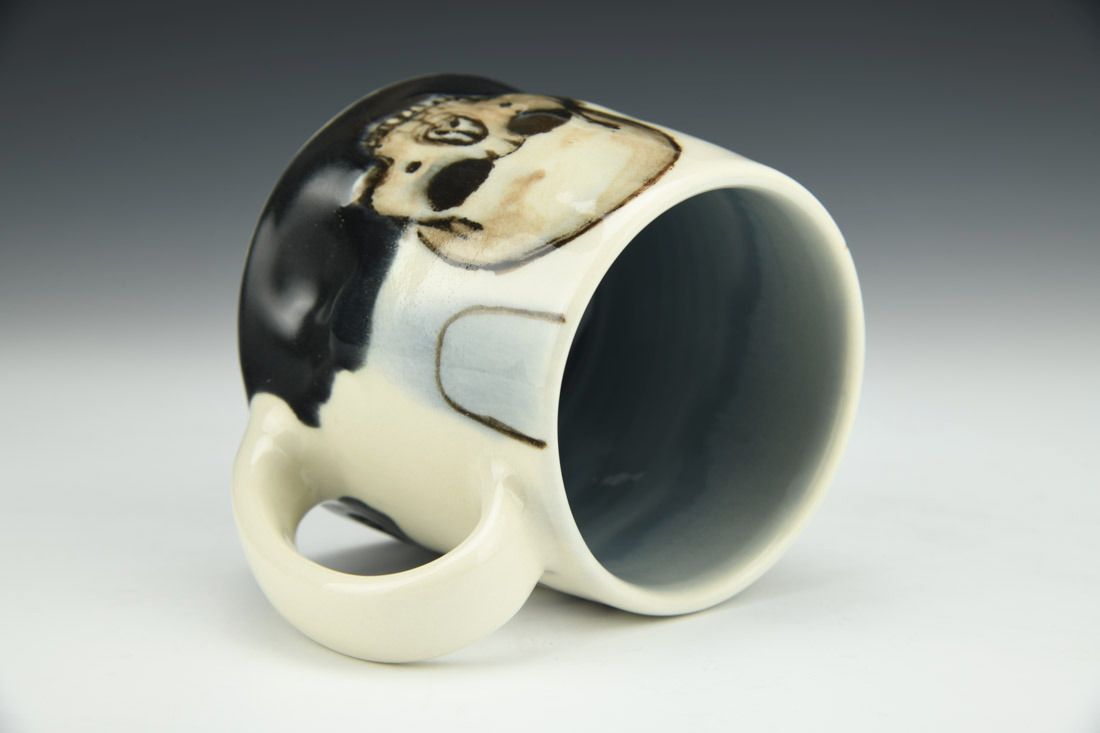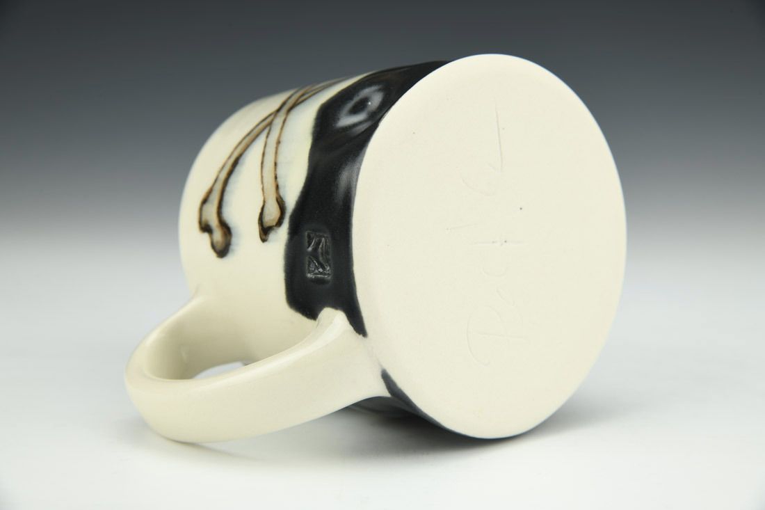Porcelain, wheel thrown, underglaze, glaze, cone 6 oxidation fired, 3.5 x 5 x 4 inches.