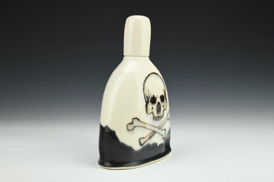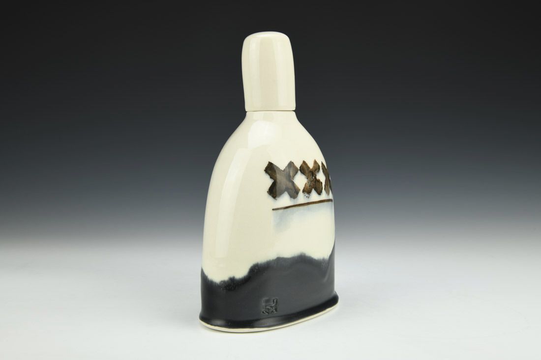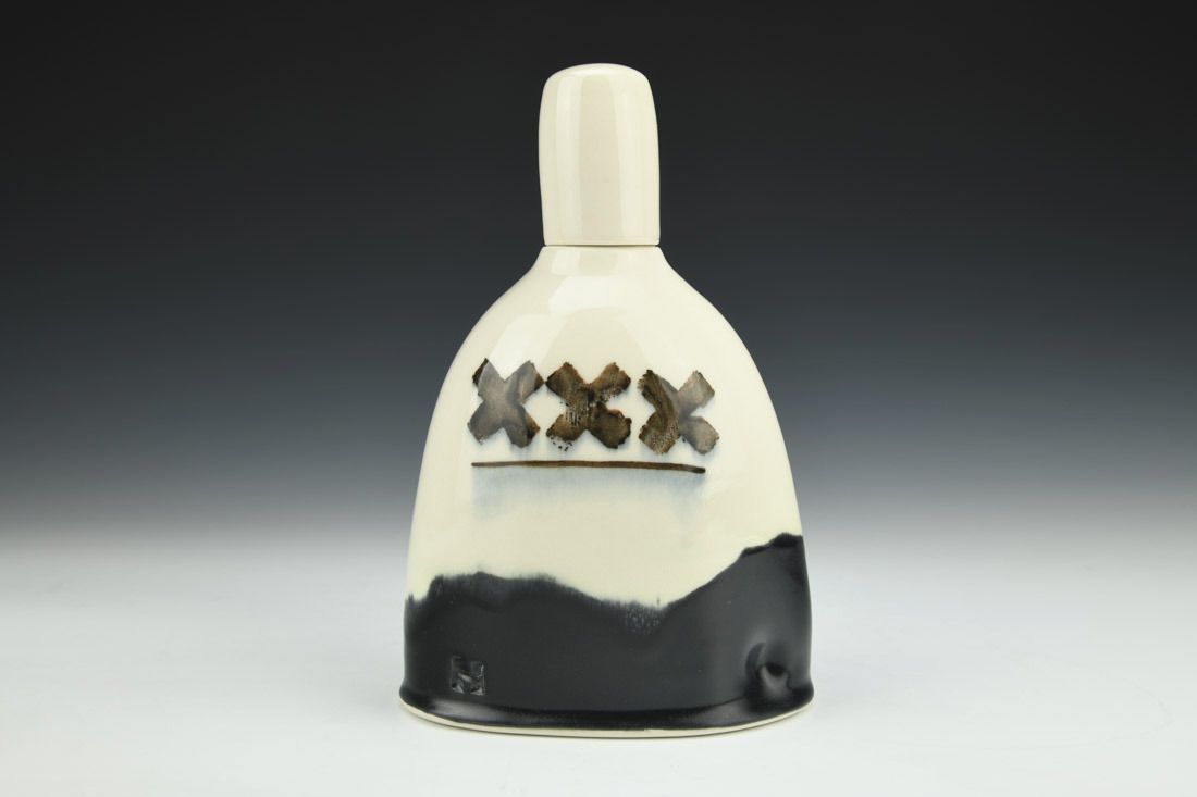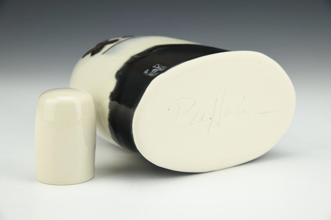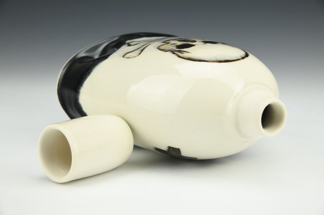 Porcelain, wheel thrown, hand painted, underglaze, glaze, cone 6 oxidation fired, 8.25 x 5.25 x 3.25 inches.
