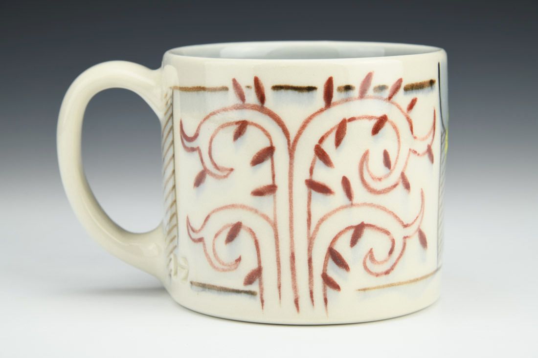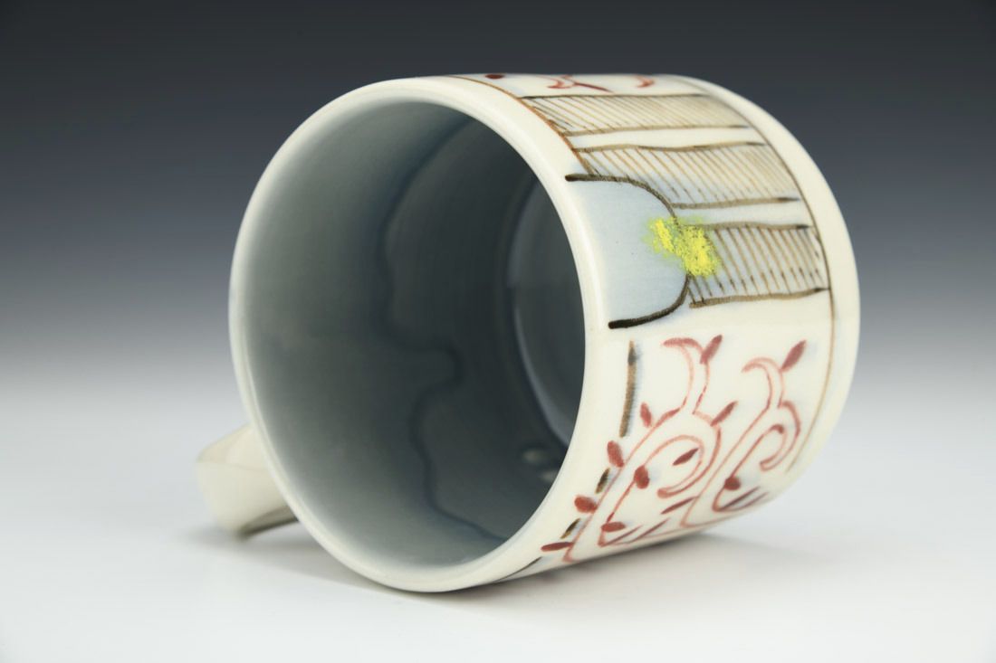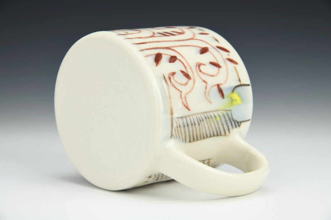 Porcelain, wheel thrown, hand painted underglaze, 3.75 x 5.5 x 4 inches.