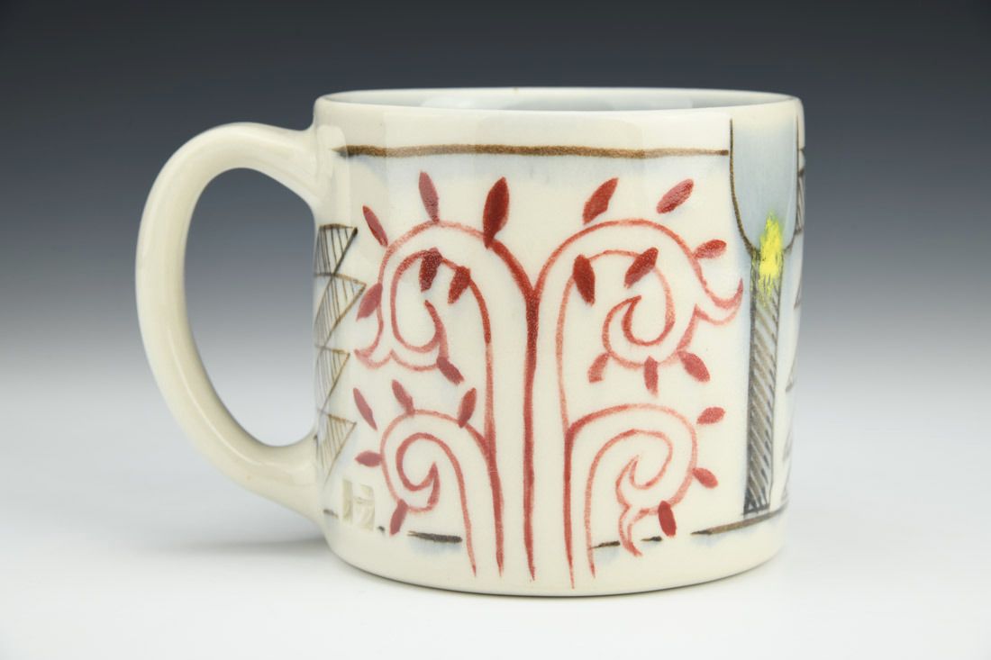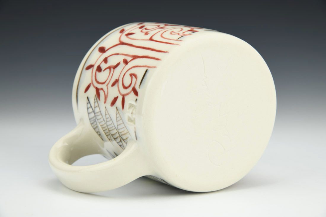 Porcelain, wheel thrown, hand painted underglaze, 3.75 x 5.5 x 4 inches.