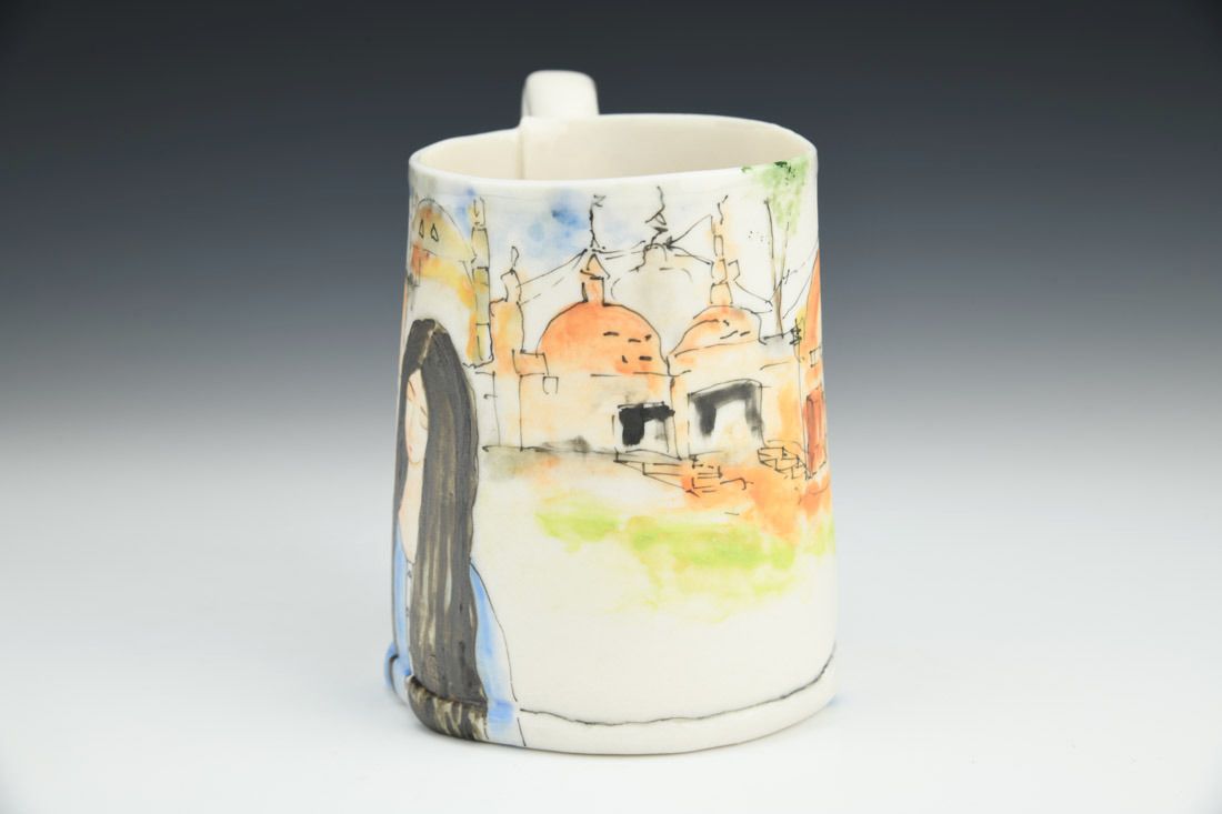 Frost Porcelain, hand built, hand painted, underglazes, glazes, cone 5 fired, 4.25 x 5 x 3.5 inches.