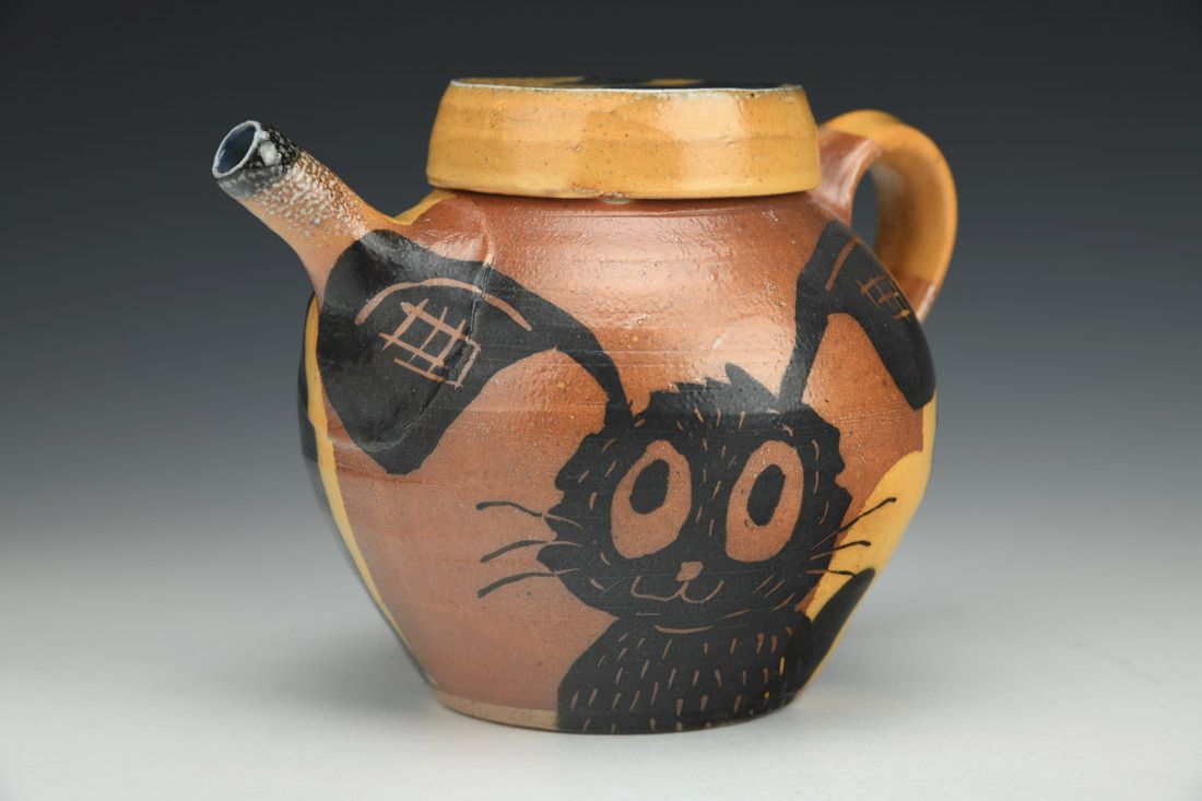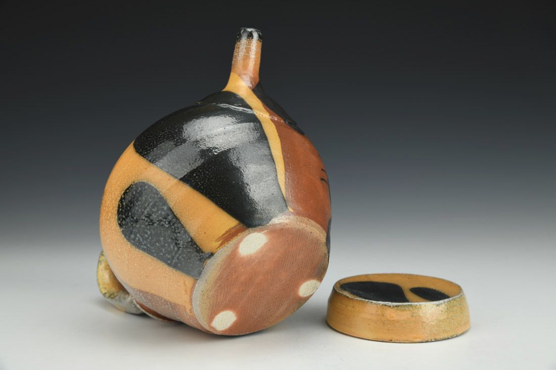 White stoneware, wheel thrown, cone 10 soda fired, 5.25 x 7.5 x 5.25 inches.
