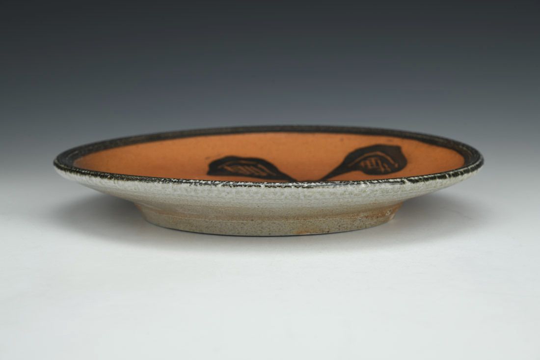 White stoneware, wheel thrown, cone 10 soda fired, 1.5 x 9.25 x 9.25 inches.