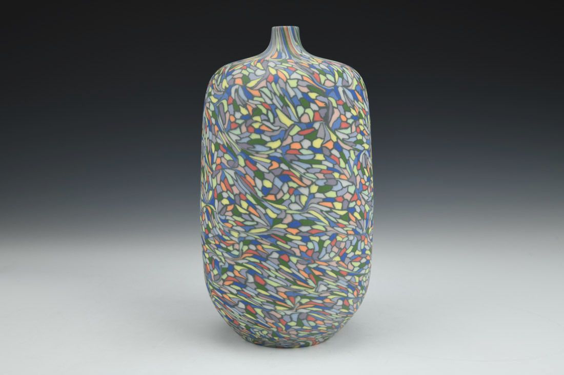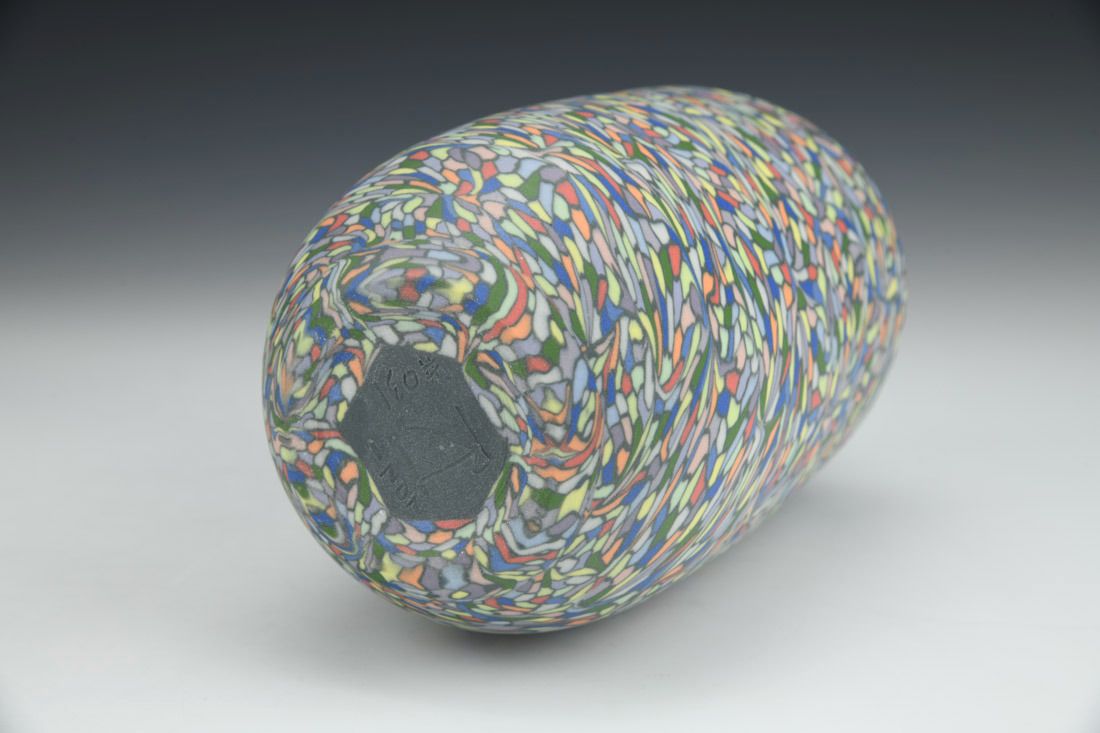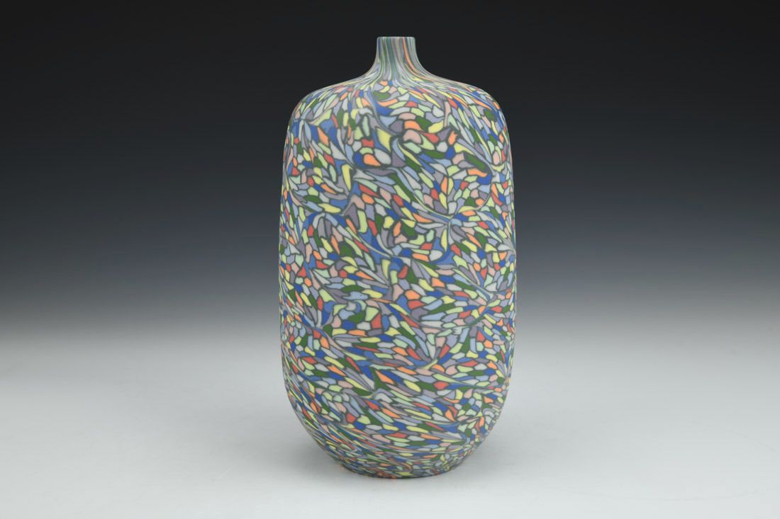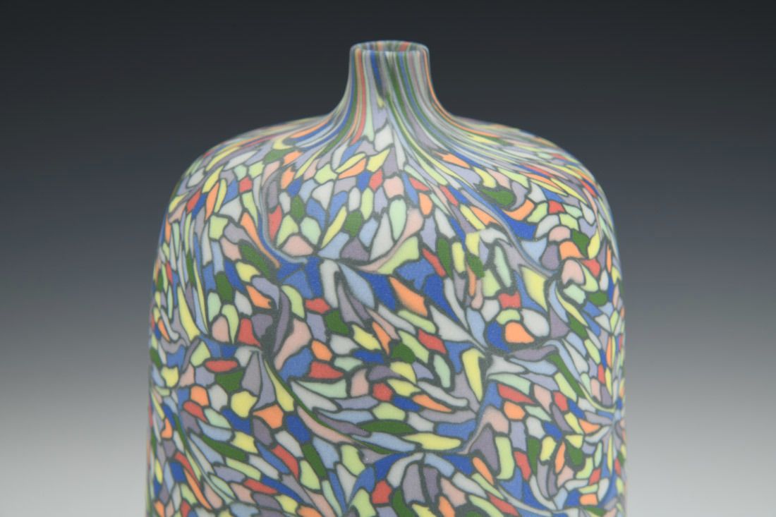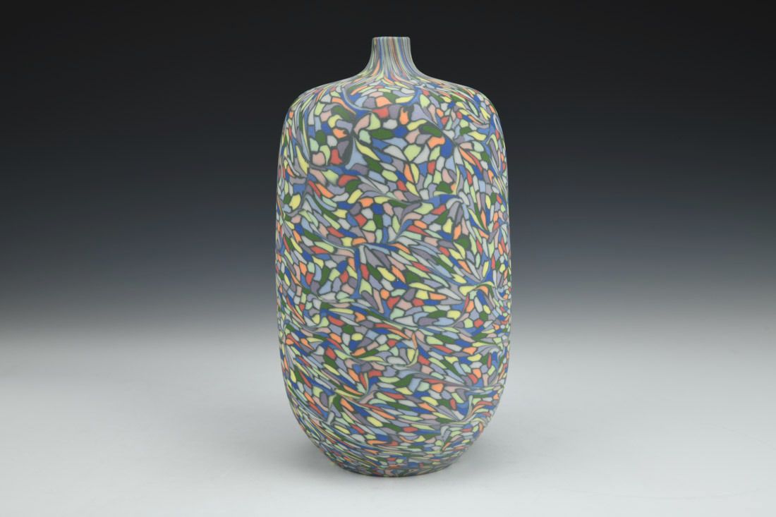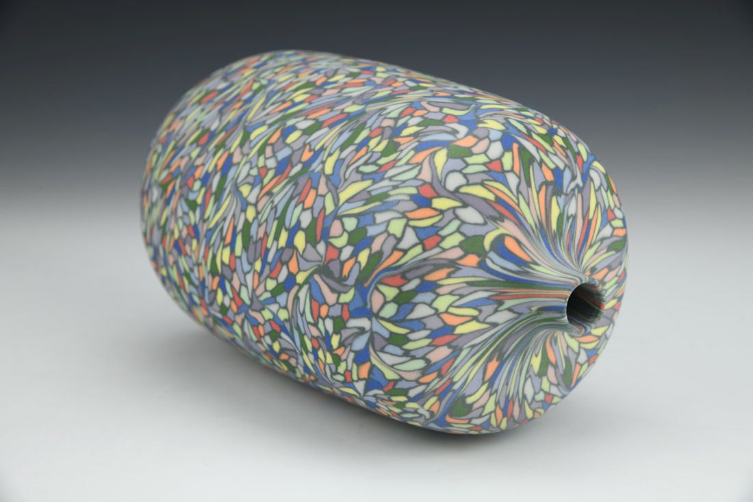 Colored porcelain, wheel thrown and hand built, cone 6 fired, 8 x 4 x 4 inches.