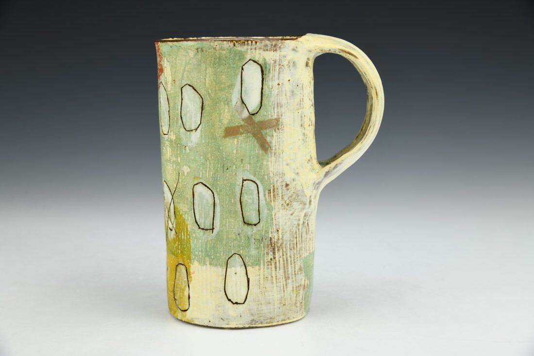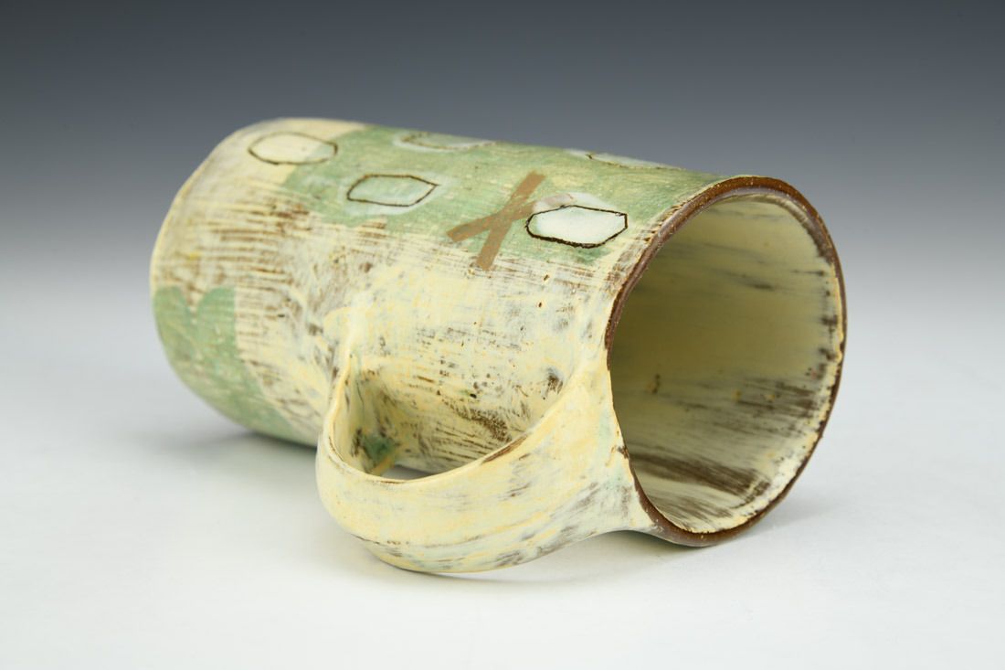 Stoneware, hand built with slabs, cone 5 electric fired, 5.5 x 4.5 x 3 inches.