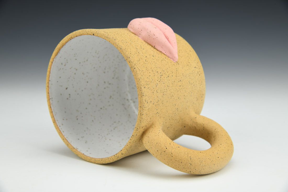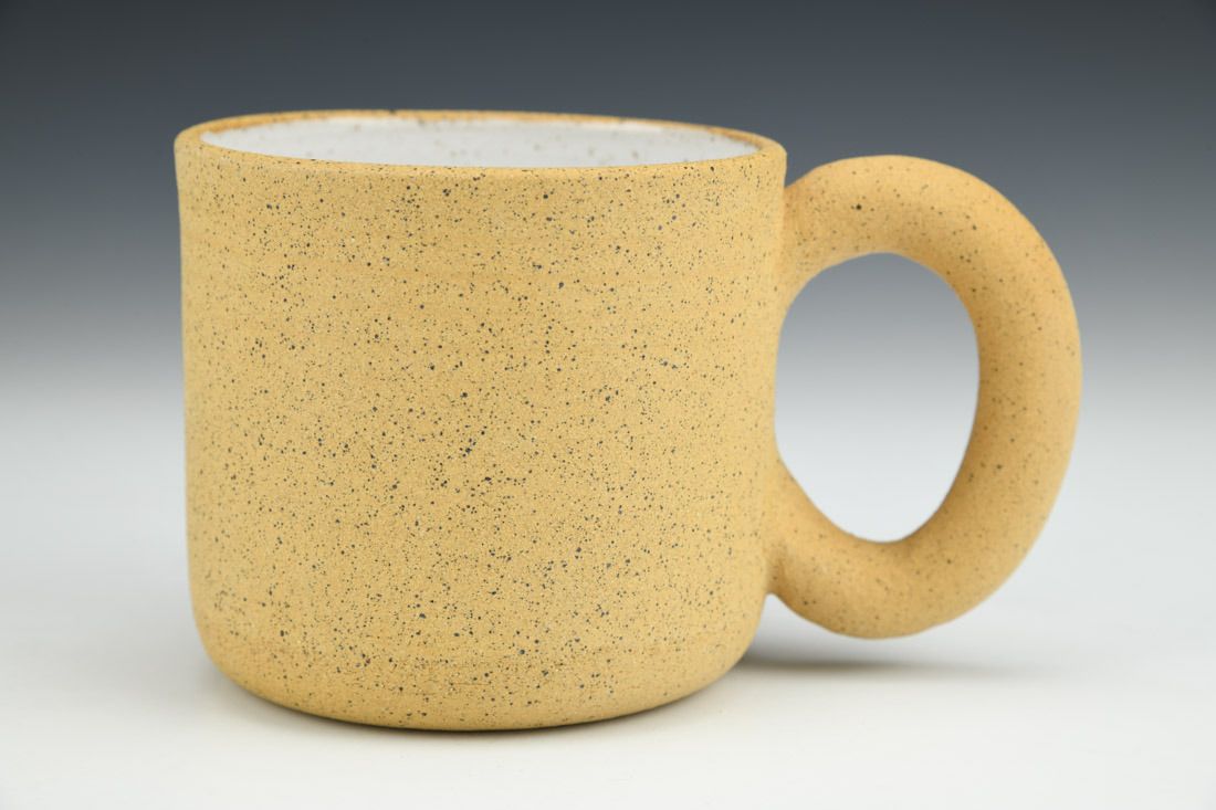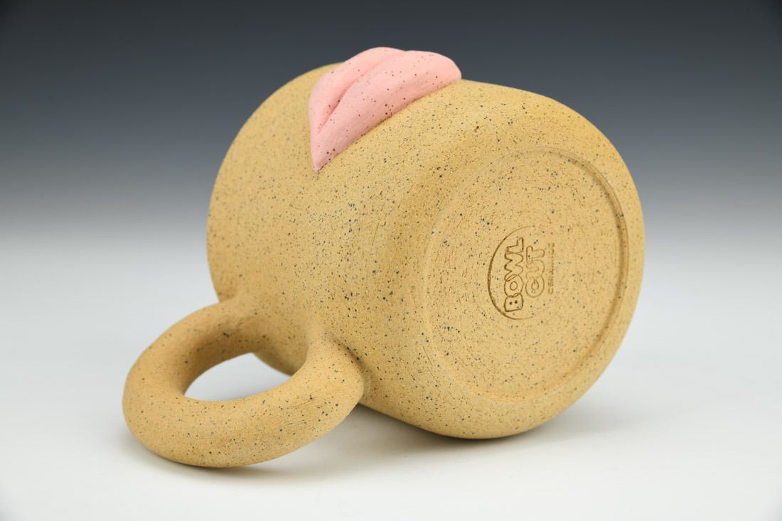 Speckled buff stoneware, wheel thrown and hand built, underglaze, glossy white glaze, 3.5 x 5.5 x 4.25 inches.