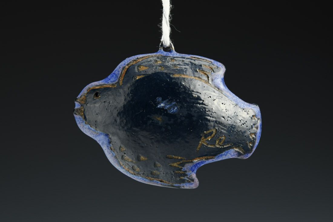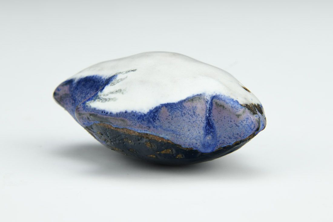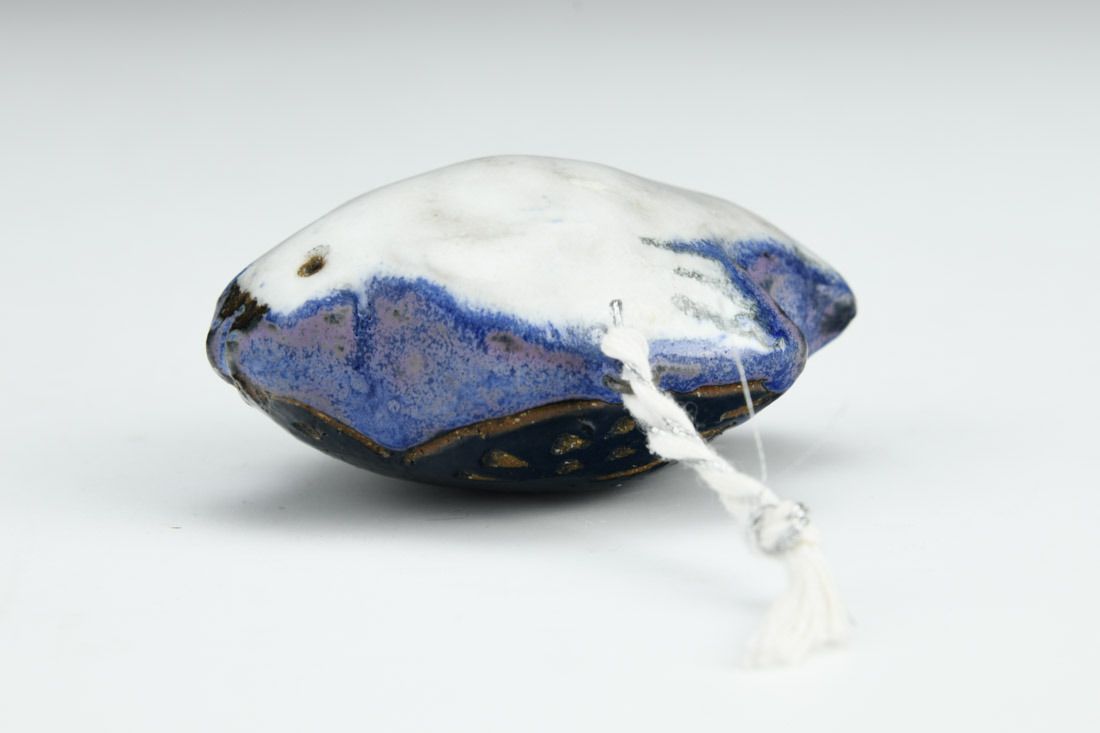 Mid-range stoneware with nichrome wire and cord, hand built hollow form, glaze, cone 6 fired, 2.5 x 1.75 x 1.25 inches.