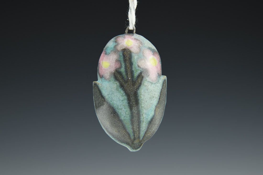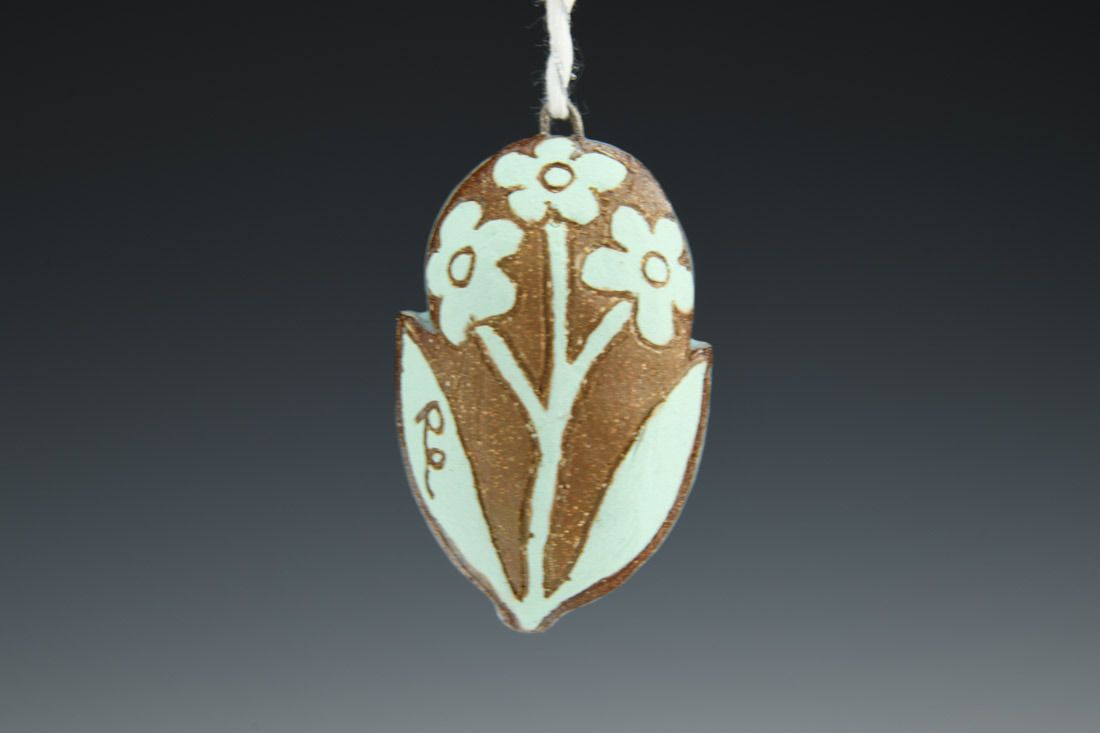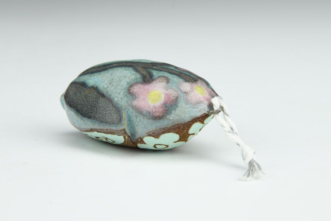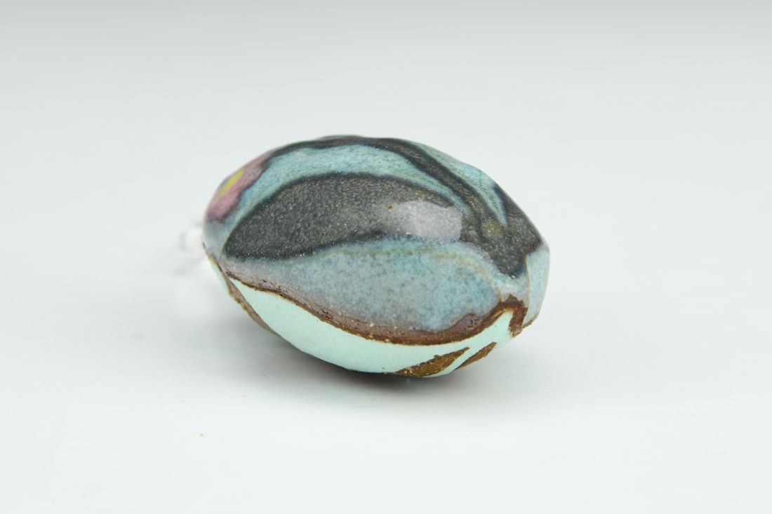 Mid-range stoneware with nichrome wire and cord, hand built hollow form, glaze, cone 6 fired, 2.5 x 1.5 x 1.25 inches.