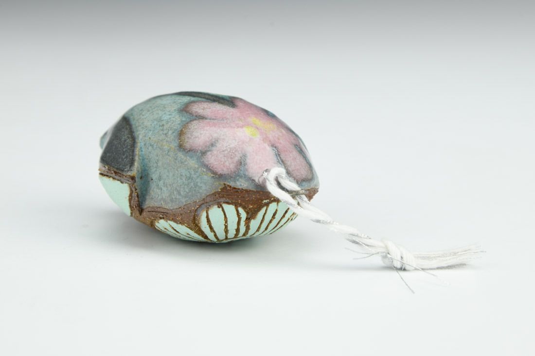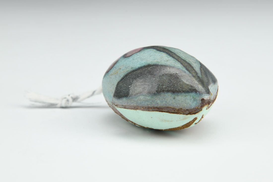 Mid-range stoneware with nichrome wire and cord, hand built hollow form, glaze, cone 6 fired, 2 x 1.5 x 2.75 inches.