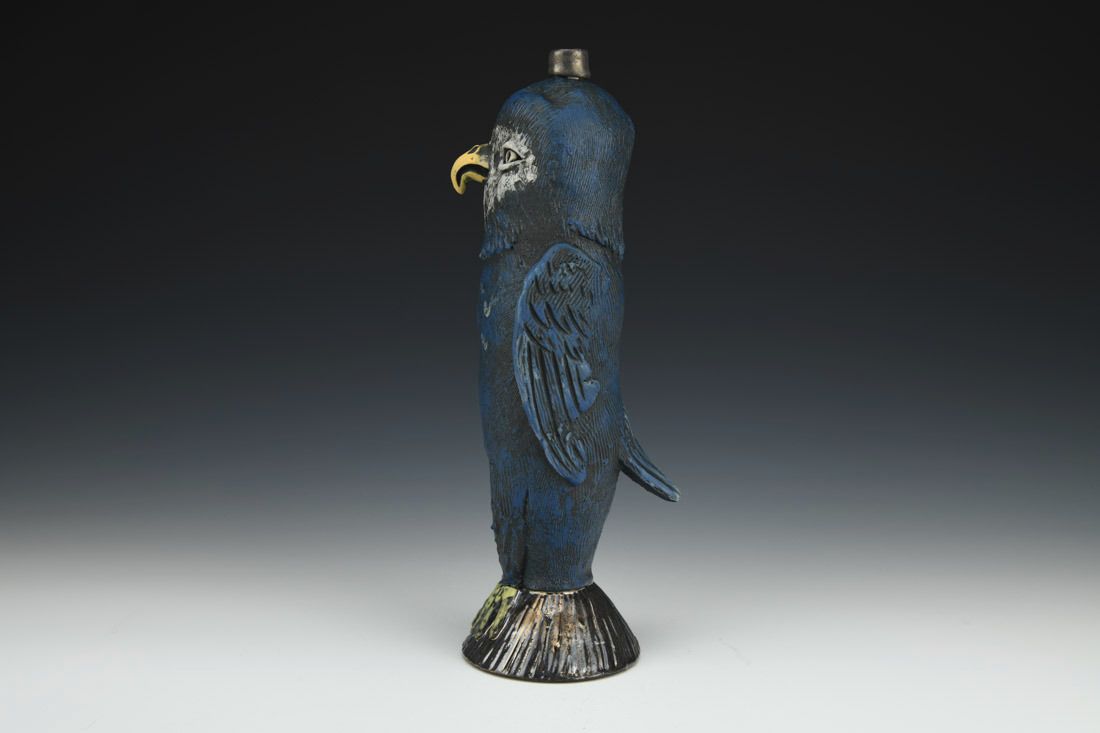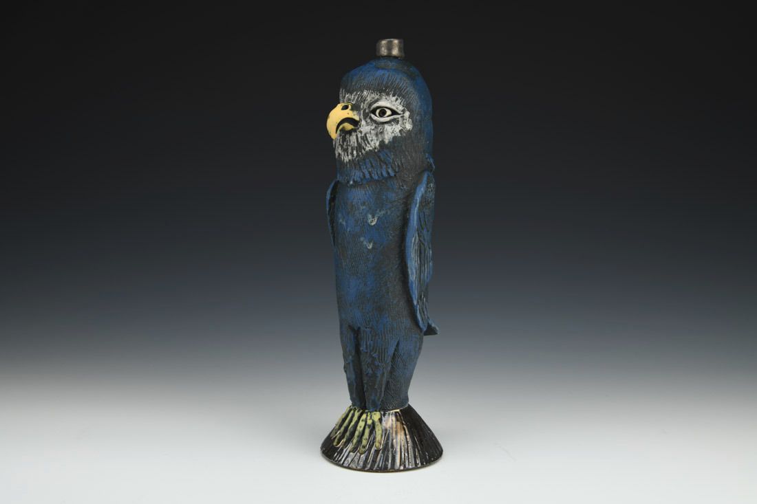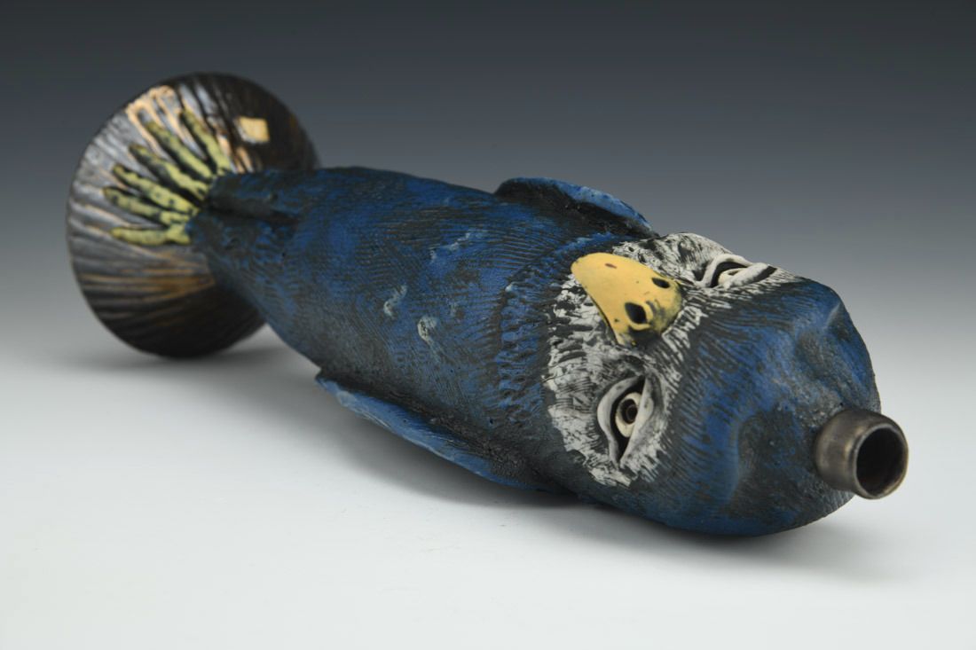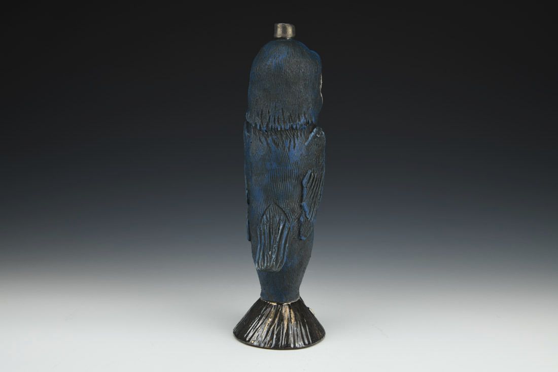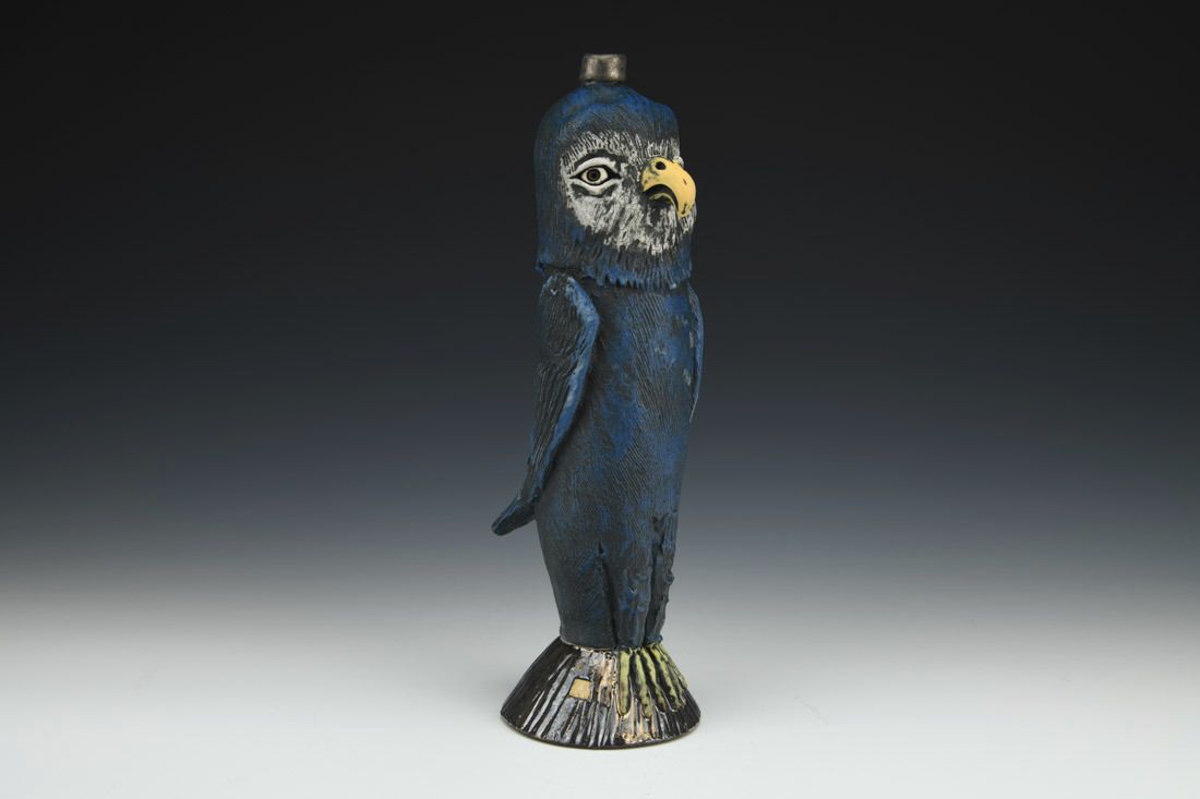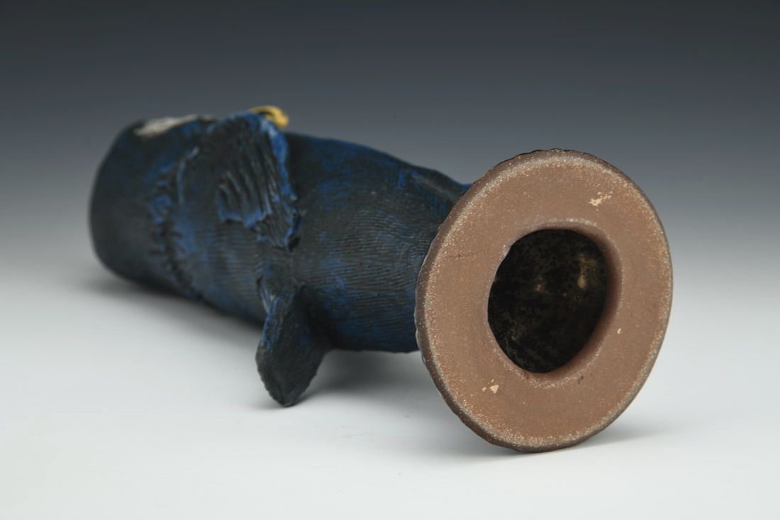 Stoneware, hand built, cone 6 oxidation fired, 12 x 5.5 x 3.75 inches.