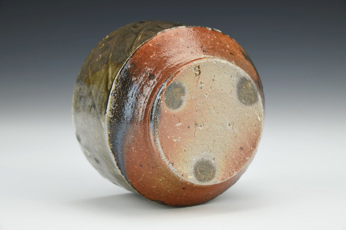 North Carolina clay blend, wheel thrown, glaze from stove ash and local granite, woodfired for 120 hours, 2.5 x 3.5 x 3.5 inches.