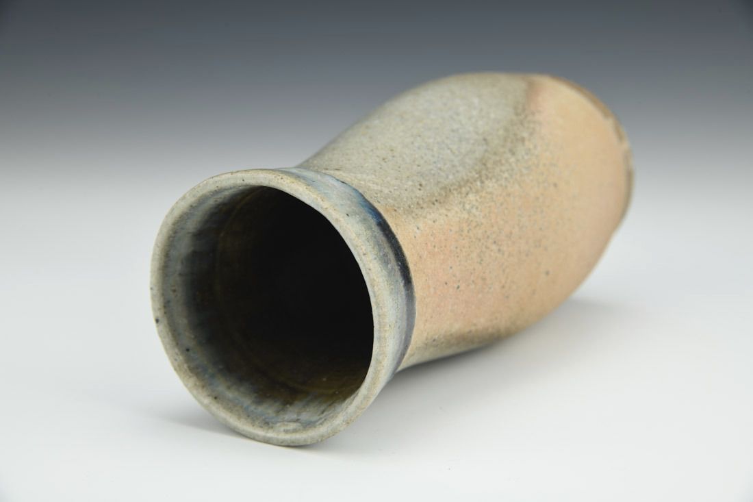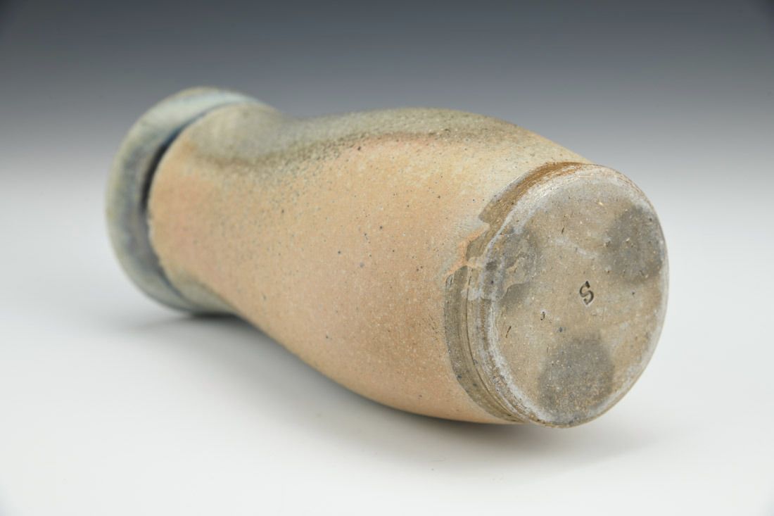North Carolina clay blend, wheel thrown, local clay slip, local granite glaze, woodfired for 120 hours with soda, 6.25 x 3 x 3 inches.