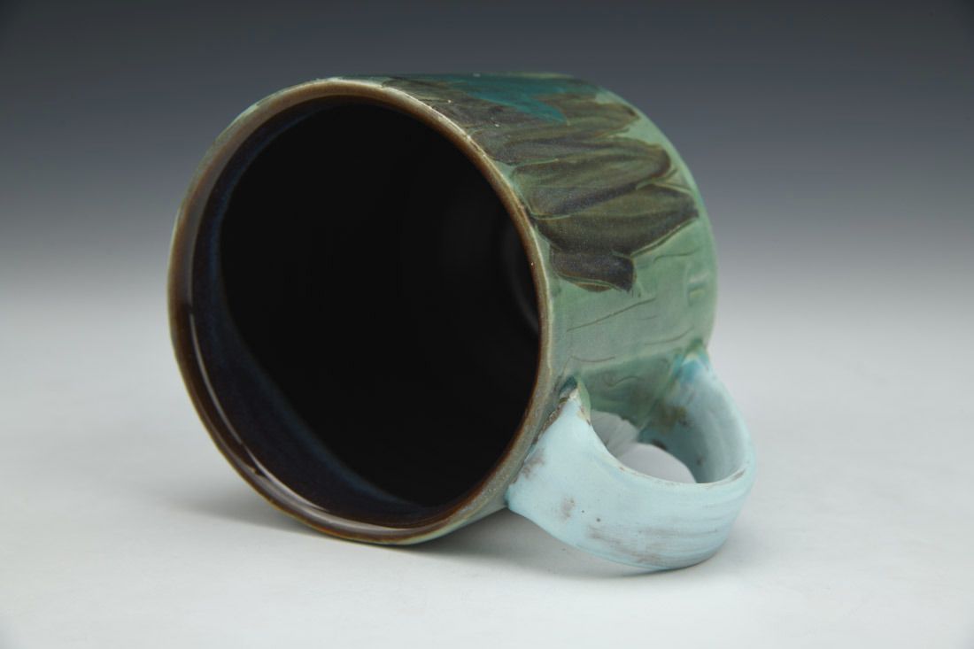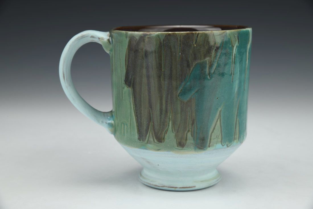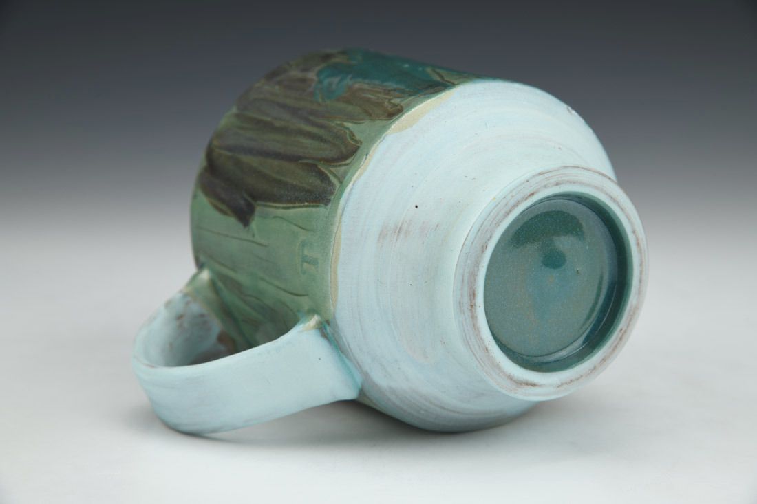 Red stoneware, wheel thrown, slip, underglaze, terra sigillata, glaze, cone 6 electric fired, 4 x 4.75 x 3.5 inches.