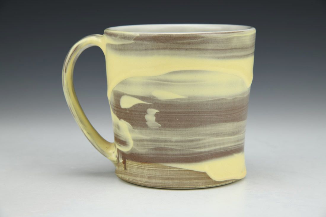 Red stoneware, wheel thrown, slip, underglaze, terra sigillata, glaze, cone 6 electric fired, 4 x 5 x 4 inches.