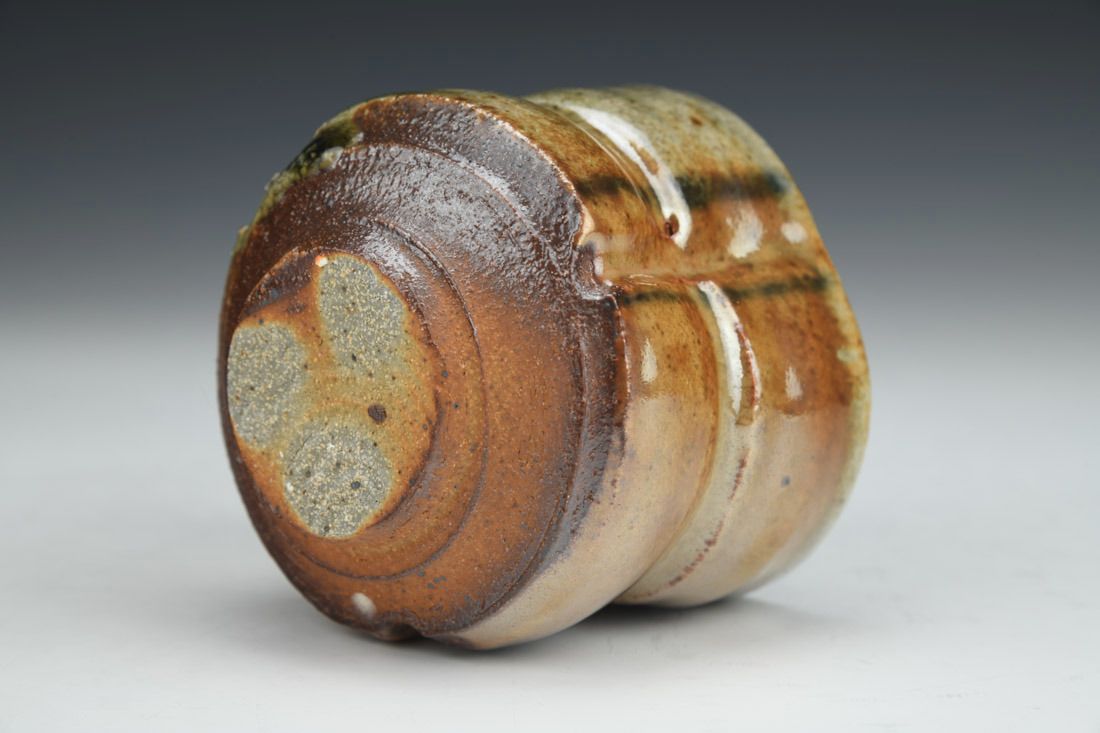 Stoneware, wheel thrown, cone 11 woodfired, 3 x 3.25 x 3.25 inches.