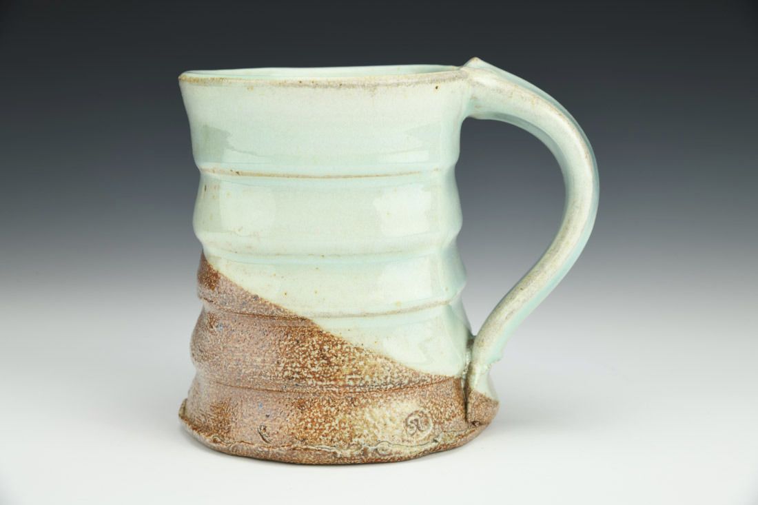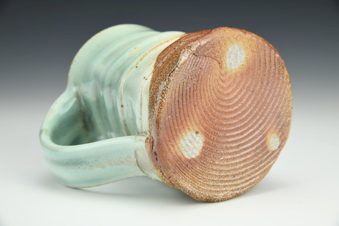 Stoneware, wheel thrown and altered, woodfired with soda, 4.75 x 5.75 x 4 inches.