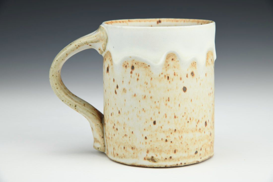 Stoneware, wheel thrown, slip, glaze, cone 11 reduction fired, 3.75 x 4.75 x 3 inches.