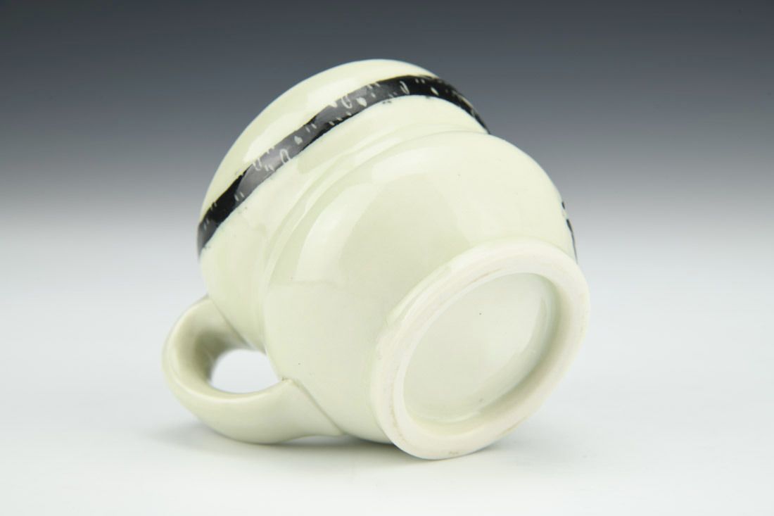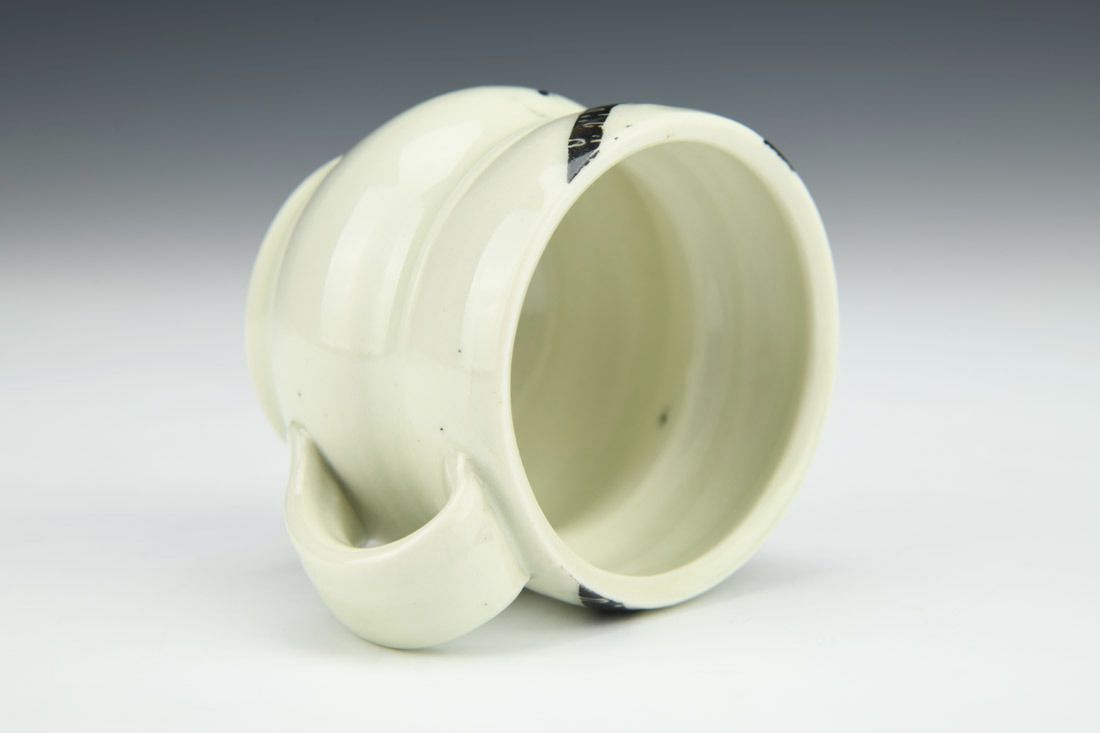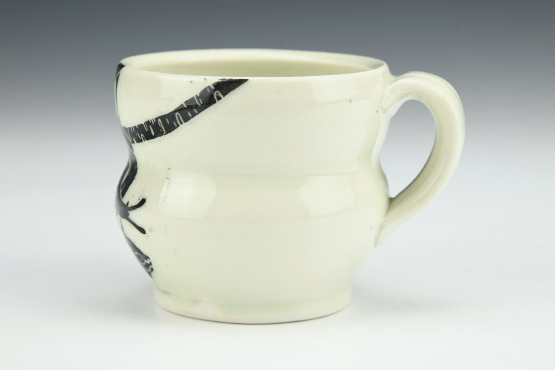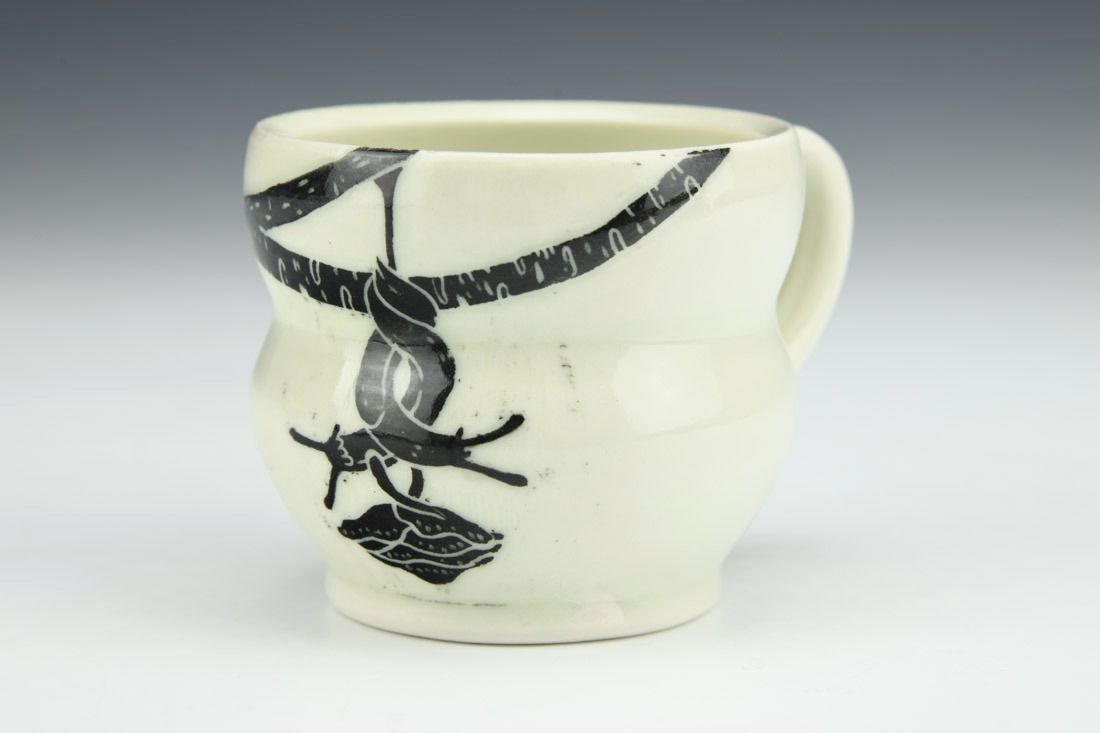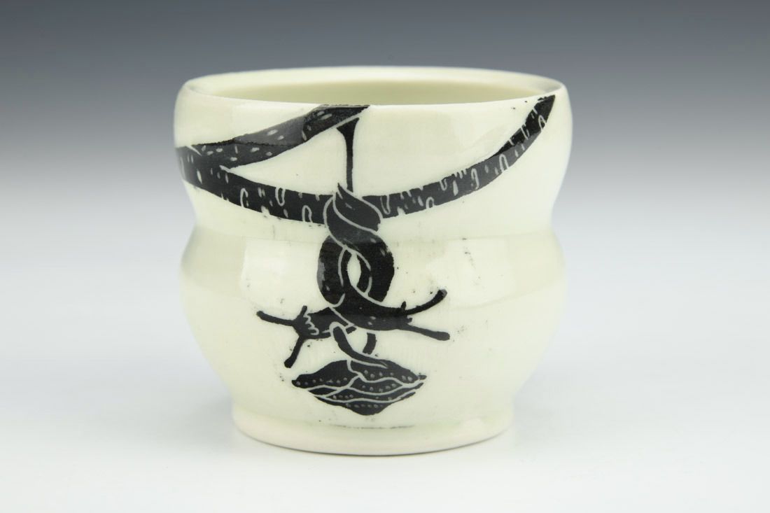 Porcelain, wheel thrown, sgraffito, cone 10 fired, 2.5 x 3.5 x 2.75 inches.