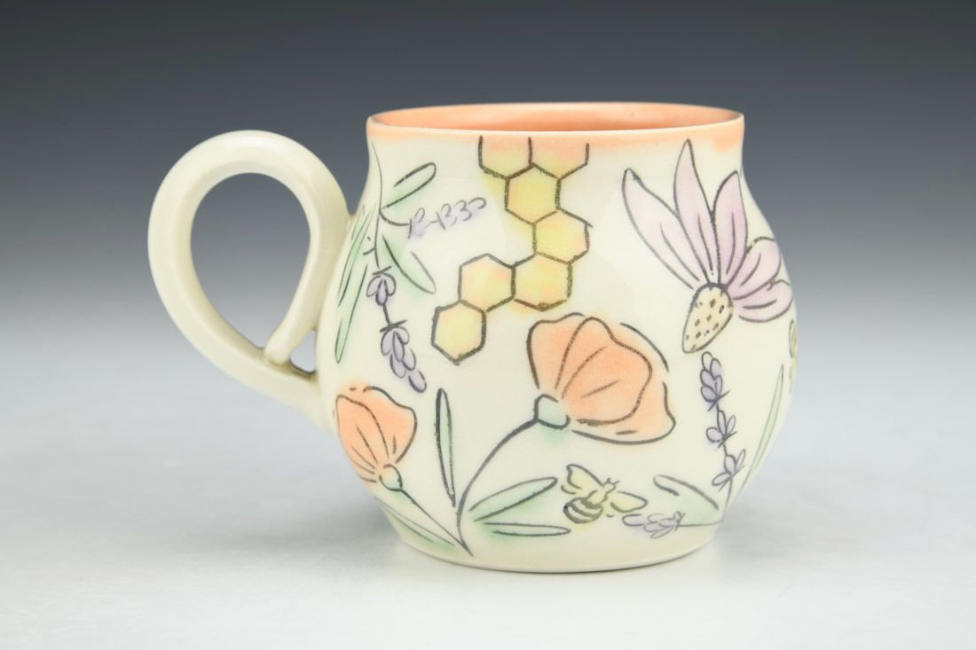Porcelain, wheel thrown, glaze, cone 6 electric fired, 3.25 x 5 x 3.75 inches.