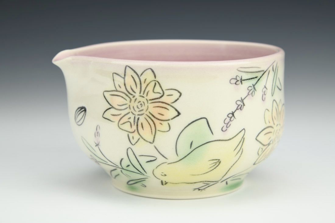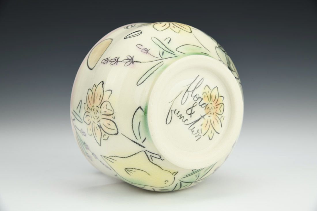 Porcelain, wheel thrown, cone 6 fired, 2.5 x 4.5 x 4.5 inches.