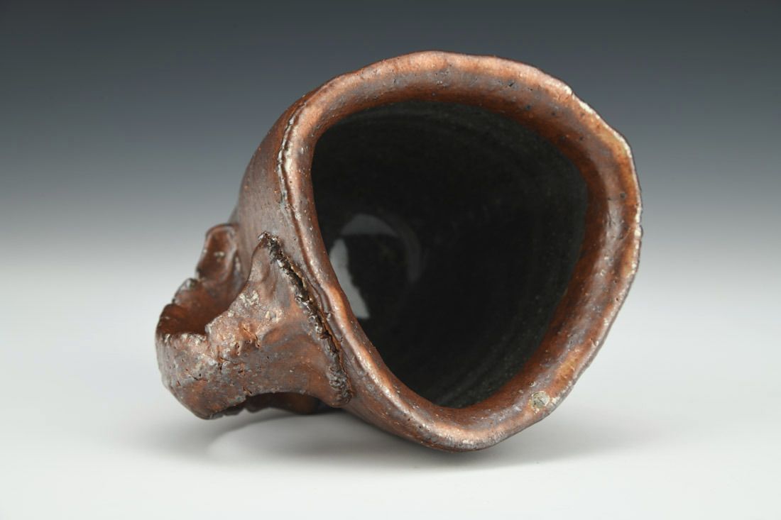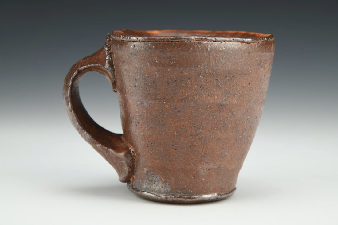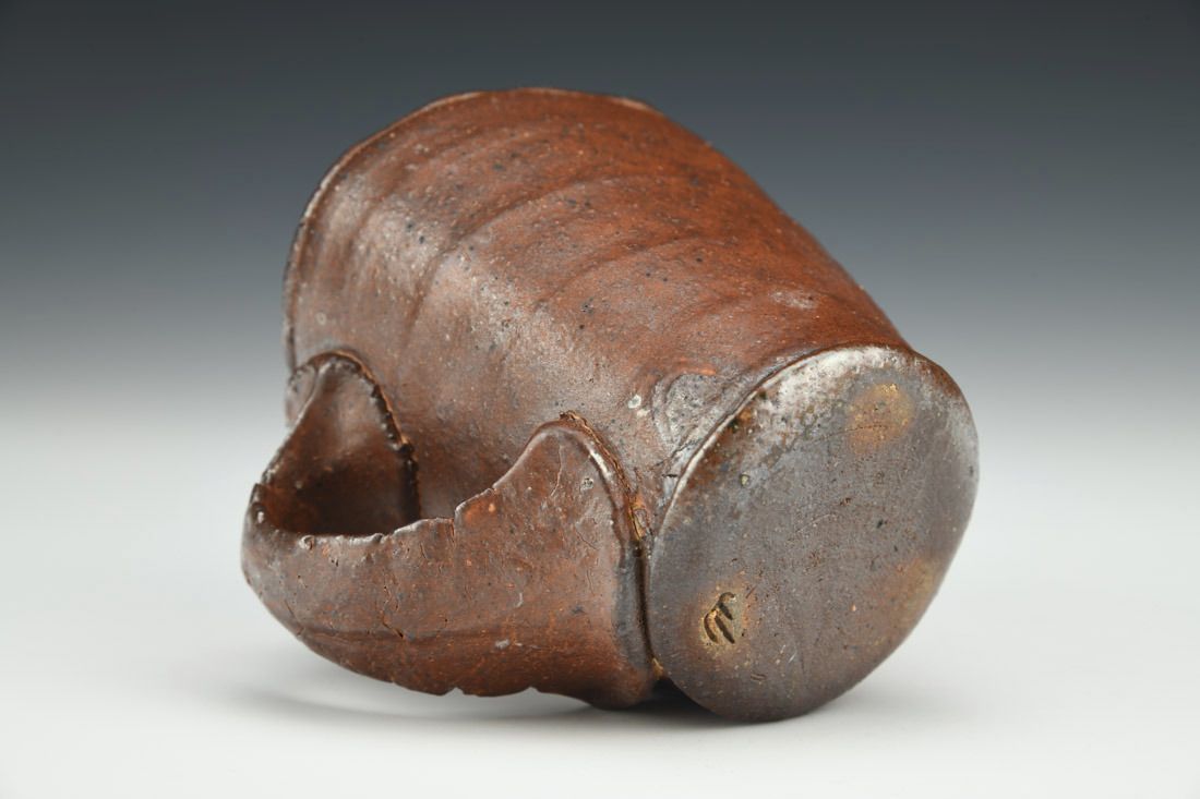 Iron rich stoneware, wheel thrown and altered, soda fired, 3.25 x 4.5 x 3.5 inches.