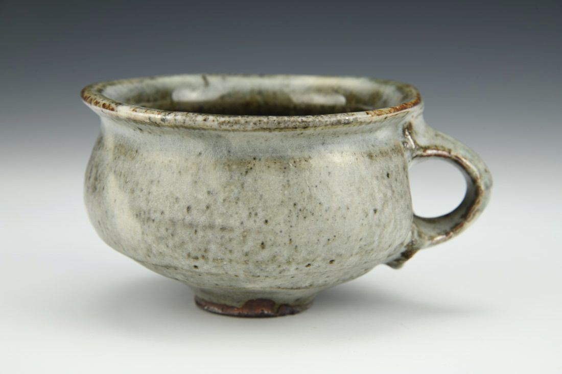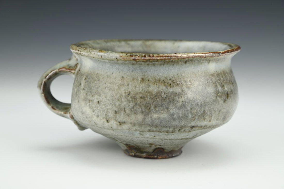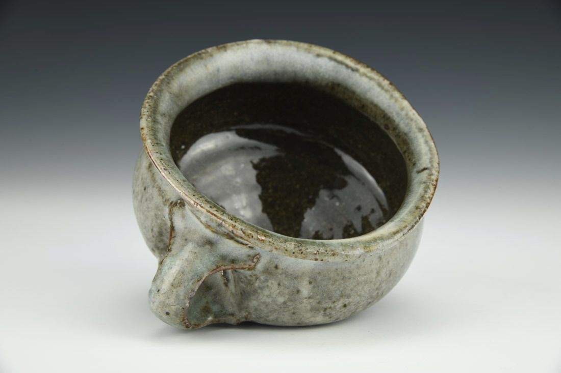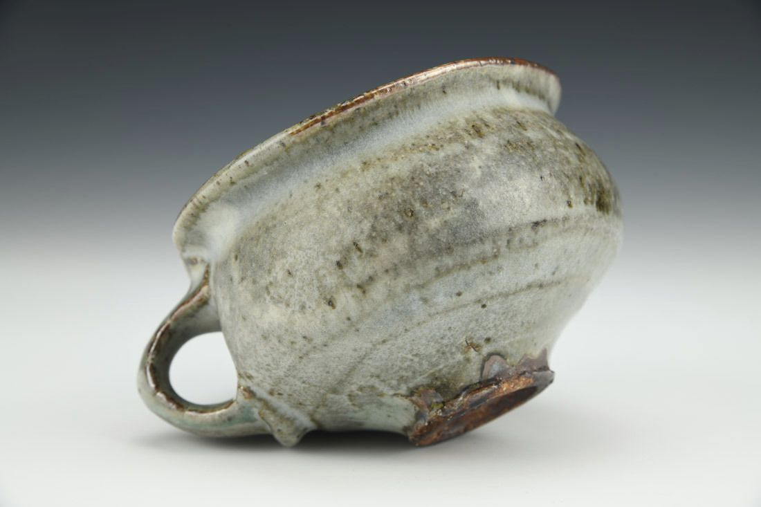Iron rich stoneware, wheel thrown, soda fired, 2.5 x 5 x 4.25 inches.