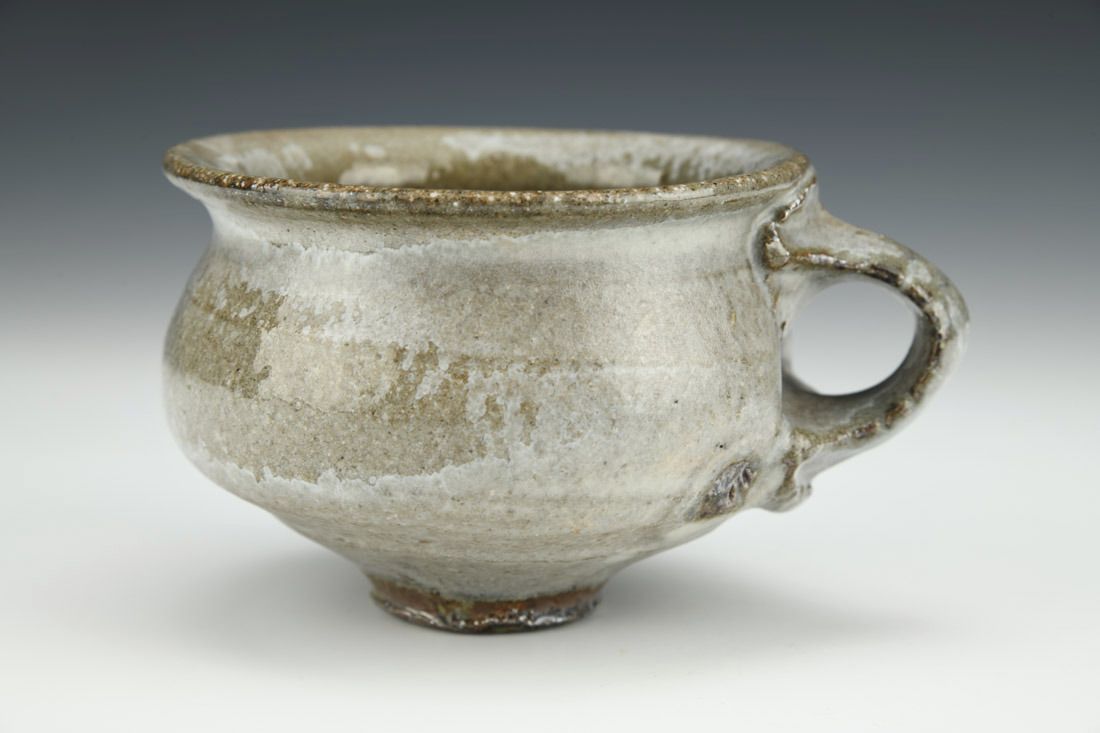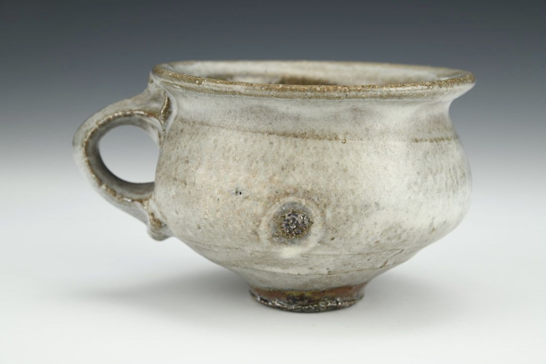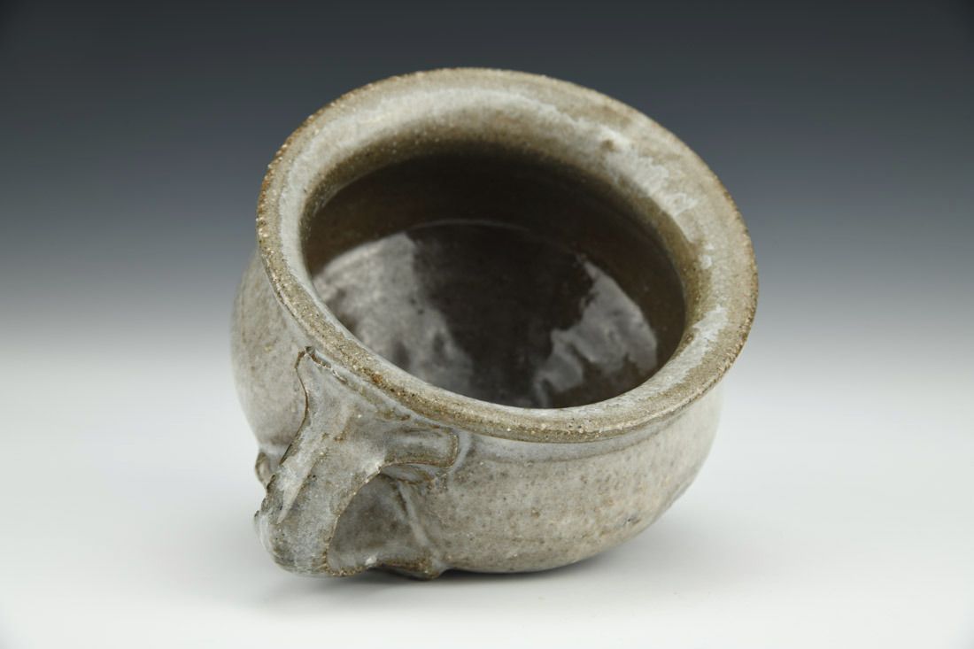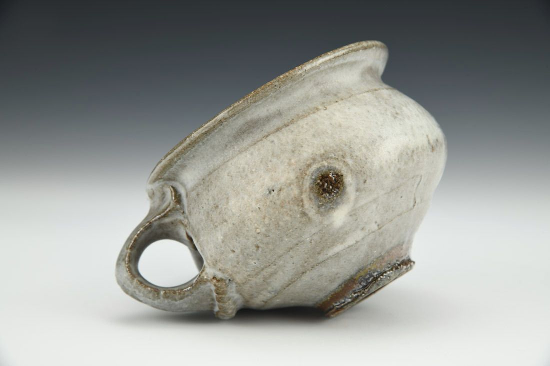 Iron rich stoneware, wheel thrown, soda fired, 3 x 5 x 4 inches.