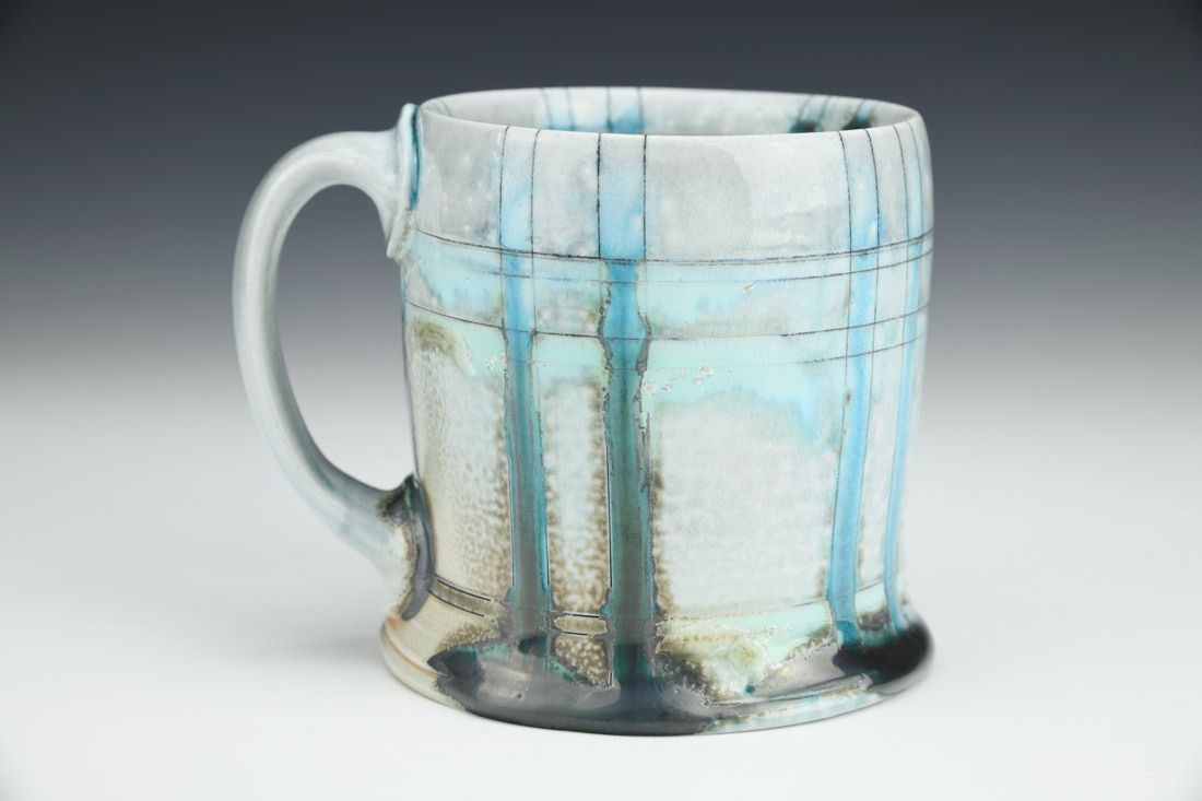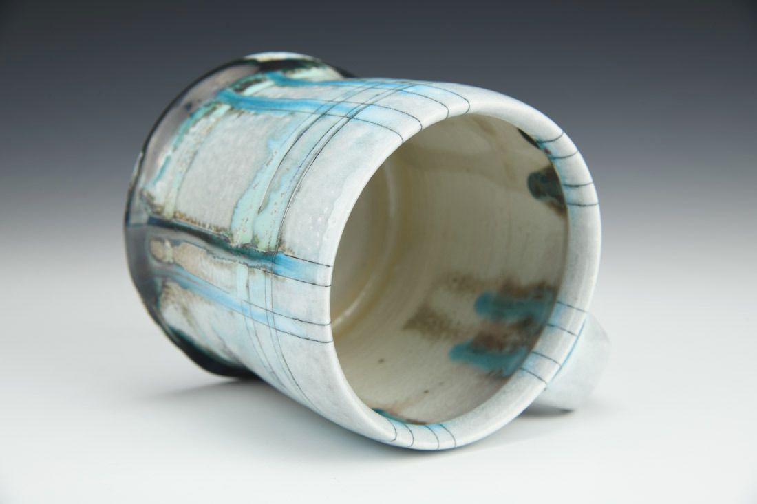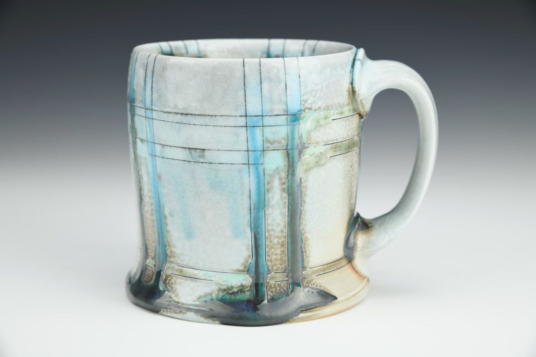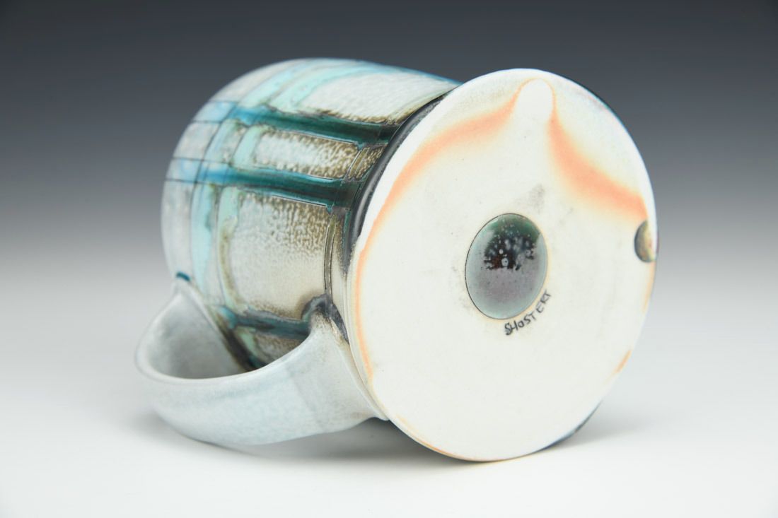Porcelain, wheel thrown, hand carved, inlaid underglaze, terra sigillata, glaze, cone 10 soda fired, 3.75 x 4.75 x 3.75 inches.